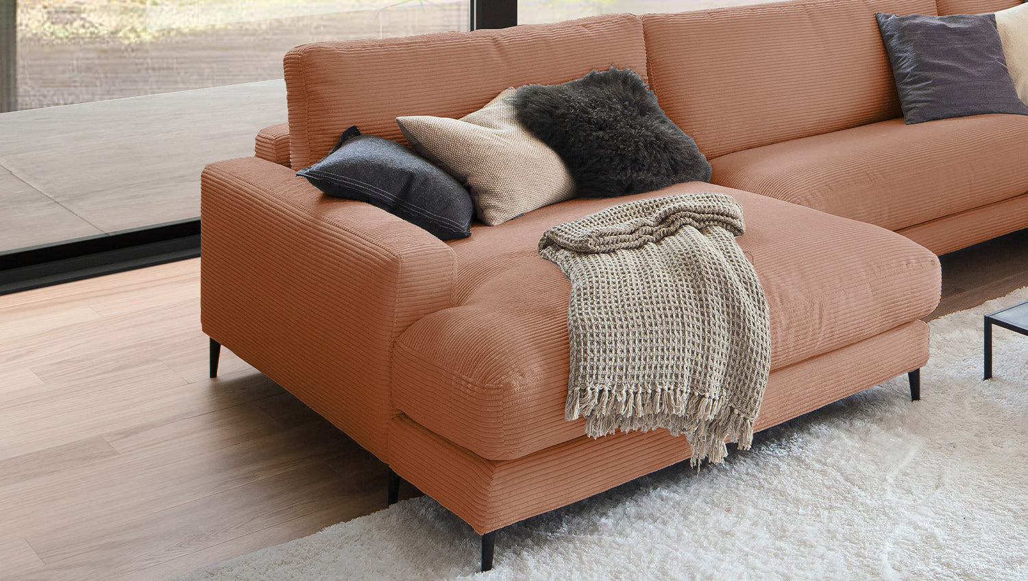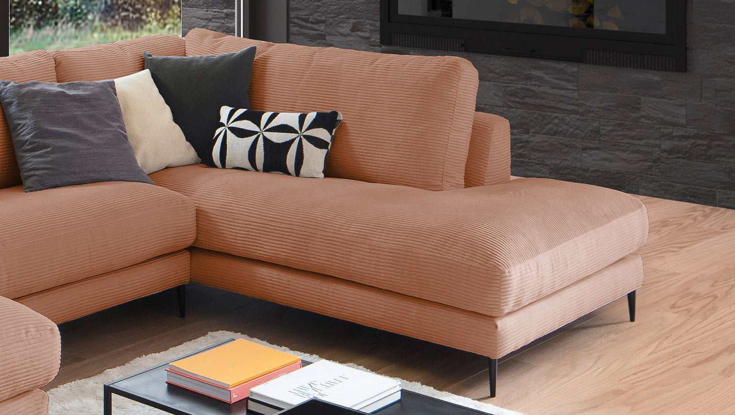 KAWOLA Sofá en forma de U CARA Pana óxido