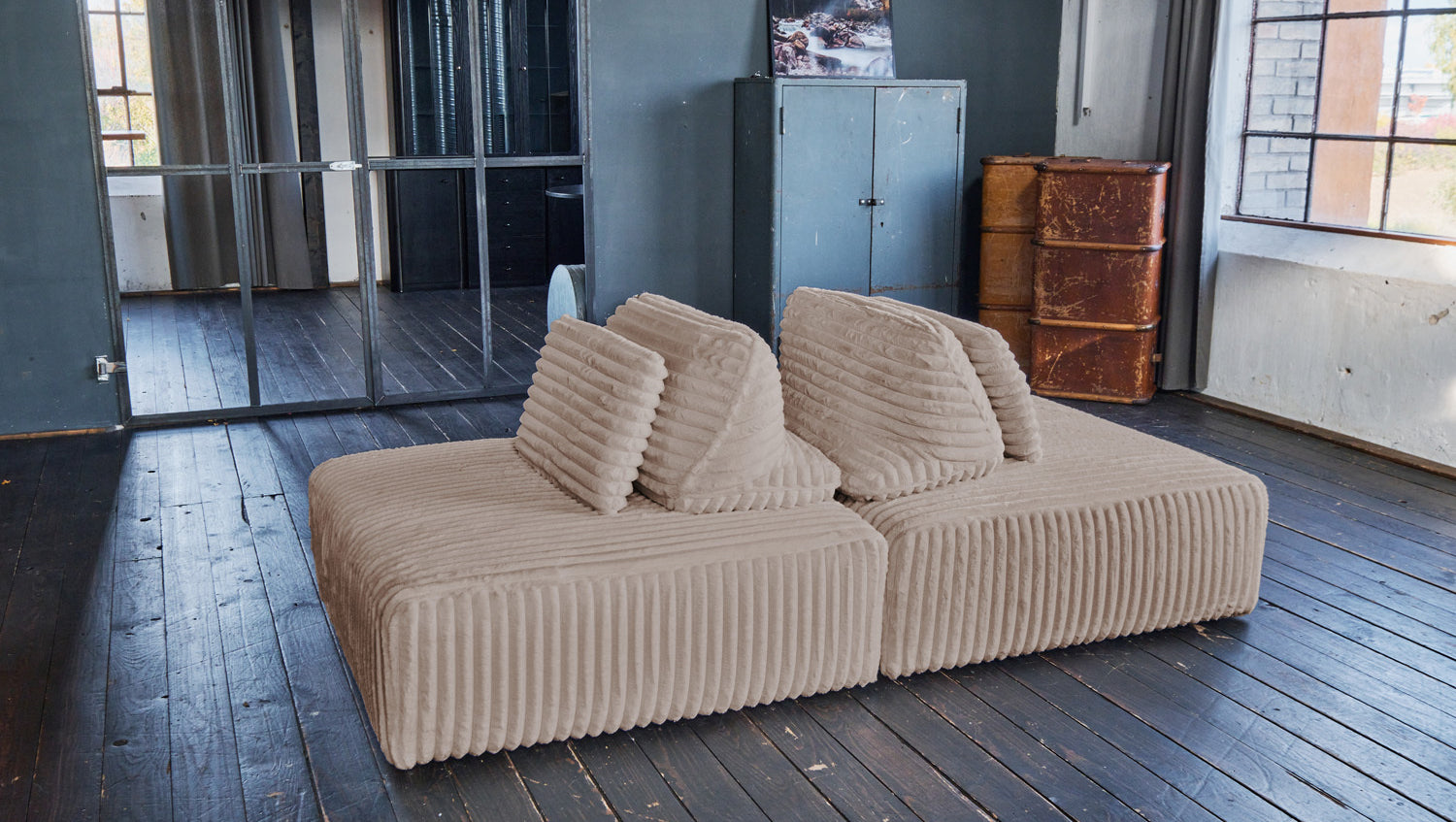 El sofá modular WIOLO SOFT de estilo escandinavo es la nueva estrella en el cielo de KAWOLA - ¡y tan único como tu hogar! La serie WIOLO SOFT es una actualización de nuestro bestseller WIOLO y se caracteriza por un acolchado mucho más suave que garantiza la máxima comodidad de asiento. La funda de alta calidad de tejido de cuerda ancha especialmente suave también es desenfundable y lavable. Se han elegido deslizadores para los pies, que dan la impresión de que el sofá está suspendido justo encima del suelo. También se incluyen dos cojines de respaldo, que actúan como respaldos tan estables como cómodos. Adapte su sofá a sus necesidades... ¡y no al revés! Puede adaptar el sofá modular WIOLO SOFT a sus necesidades individuales, día tras día. Con dos elementos de asiento, dos cojines de respaldo y dos cojines decorativos, podrá dar rienda suelta a su creatividad: Sencillo sofá de 2 plazas, cómodo sofá cama o separado como 2 taburetes Puf - ¡WIOLO SOFT de KAWOLA hace realidad sus sueños vitales! Pero también puede ver su sofá modular WIOLO SOFT como un punto de partida. Con el elemento de asiento y el cojín de respaldo, puede ampliar su nuevo sofá favorito como desee: Aquí no hay límites para su imaginación. ¡Diviértase navegando!