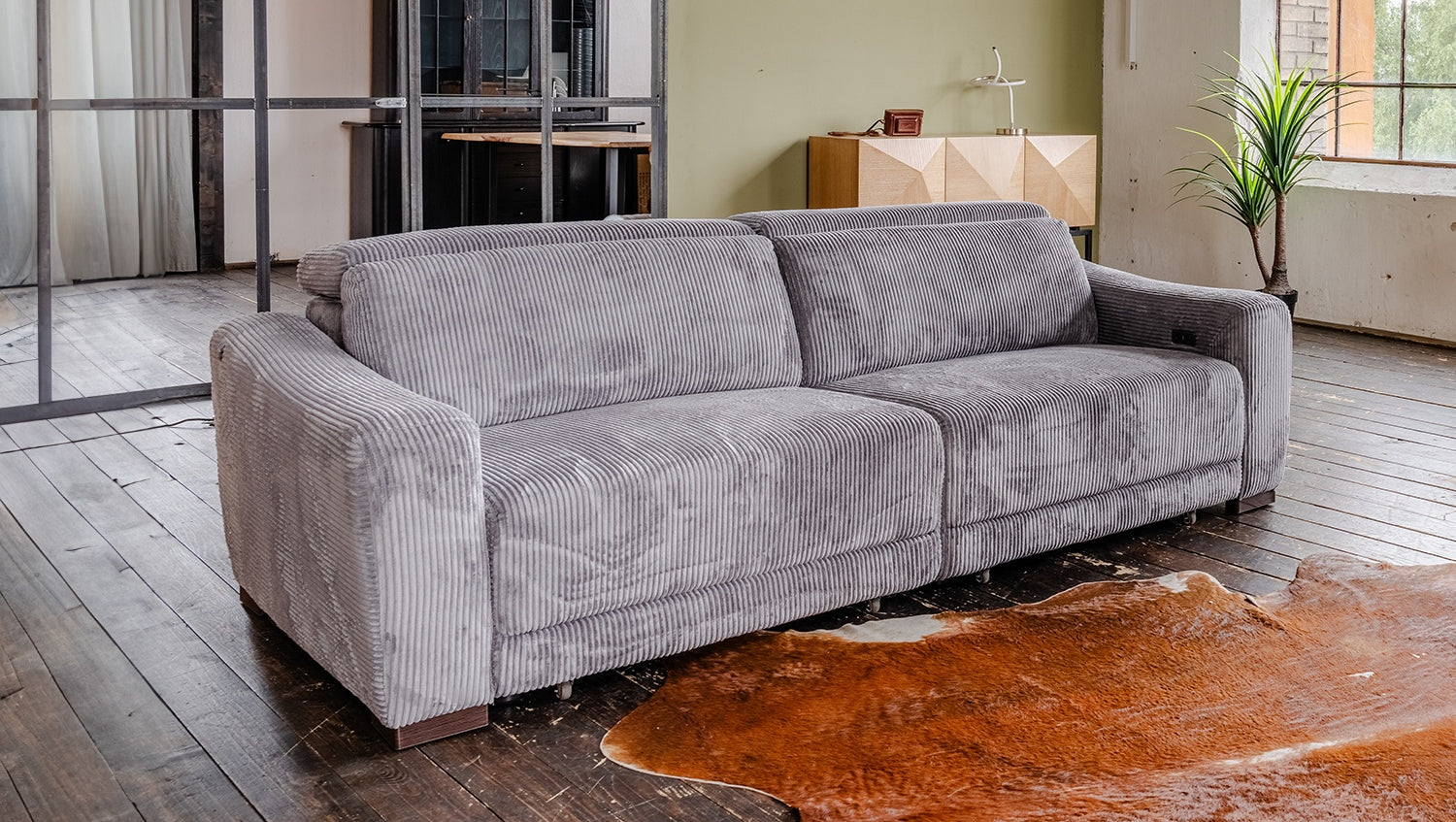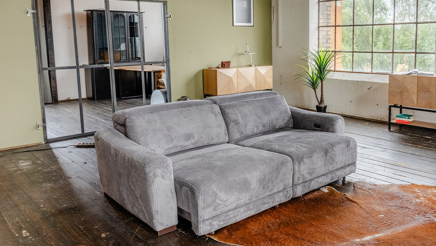 El sofá de 3 plazas KIANA impresiona por su acertada combinación de diseño moderno, características funcionales y un confort excepcional. Con su elegante revestimiento de pana, se integra armoniosamente en una gran variedad de estilos de vida y se convierte rápidamente en la pieza central del salón. Las rayas tridimensionales de pana confieren a la tela una textura elegante y garantizan un tacto agradablemente suave, cálido y grueso que invita a relajarse. Una característica especial del sofá son las dos funciones integradas de extensión del asiento, tanto en el asiento izquierdo como en el derecho, que permiten transformar KIANA en un Sofá extra ancho en un abrir y cerrar de ojos. Ambos lados pueden ajustarse cómodamente de forma eléctrica y permiten regular de forma continua la profundidad del asiento y del respaldo. Cuando está completamente extendido, el sofá alcanza una profundidad de hasta 156 cm y una profundidad de asiento de aproximadamente 102 cm, ideal para reclinarse, estirarse y desconectar. Para mayor comodidad, el sofá dispone de dos reposacabezas ajustables individualmente hasta una altura máxima de 96 cm. KIANA es la elección ideal para todo aquel que busque un sofá funcional de alta calidad con un aspecto elegante que impresione tanto por sus características funcionales como por su aspecto acogedor. Ya sea para pasar la tarde frente al televisor, echar una cabezadita o simplemente para sentirse bien, este sofá ofrece el máximo confort con sólo pulsar un botón.