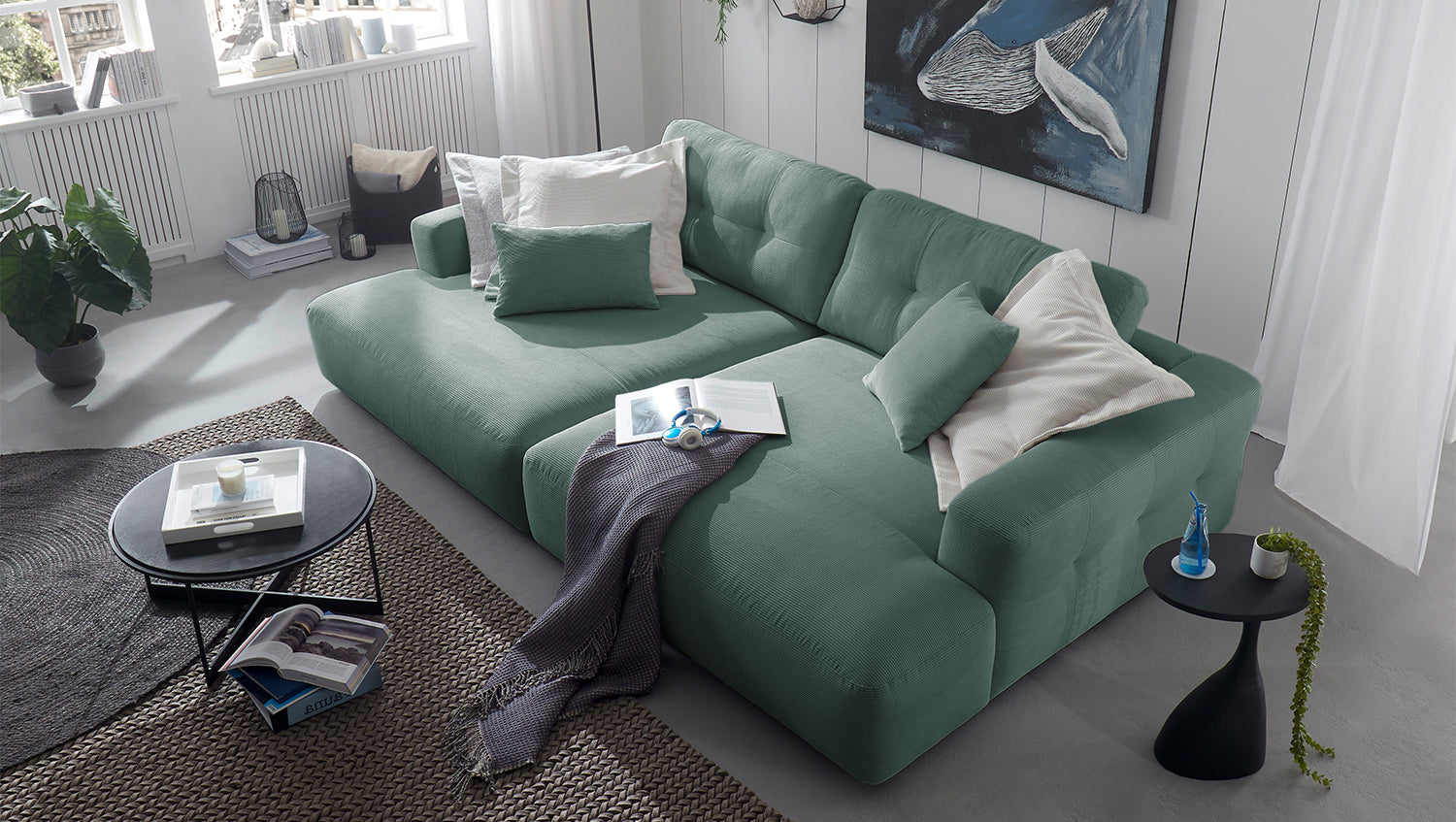 El Sofá extra ancho MIKA de KAWOLA combina un diseño moderno con un acabado de alta calidad y se convertirá en el centro de atención de su salón. Con su tapizado integral en la moderna tela Pana, el sofá resulta atractivo desde todos los ángulos y se puede colocar de forma flexible en la habitación. Su característica más destacada es la comodidad del asiento, de firmeza media, que ofrece un agradable equilibrio entre apoyo y comodidad. Con unas dimensiones de 300 cm de ancho y 167 cm de fondo, el sofá ofrece espacio suficiente para pasar horas de relax, mientras que la suspensión de muelles ondulados del asiento y el duradero tapizado de espuma fría proporcionan comodidad y apoyo adicionales. El Sofá extra ancho MIKA de KAWOLA no sólo es elegante y cómodo, sino también muy acogedor, para pasar horas de relax en el salón. Regálese lo mejor y opte por calidad y estilo: elija MIKA.