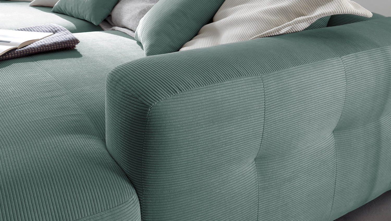 KAWOLA Sofá extra ancho MIKA pana fina verde
