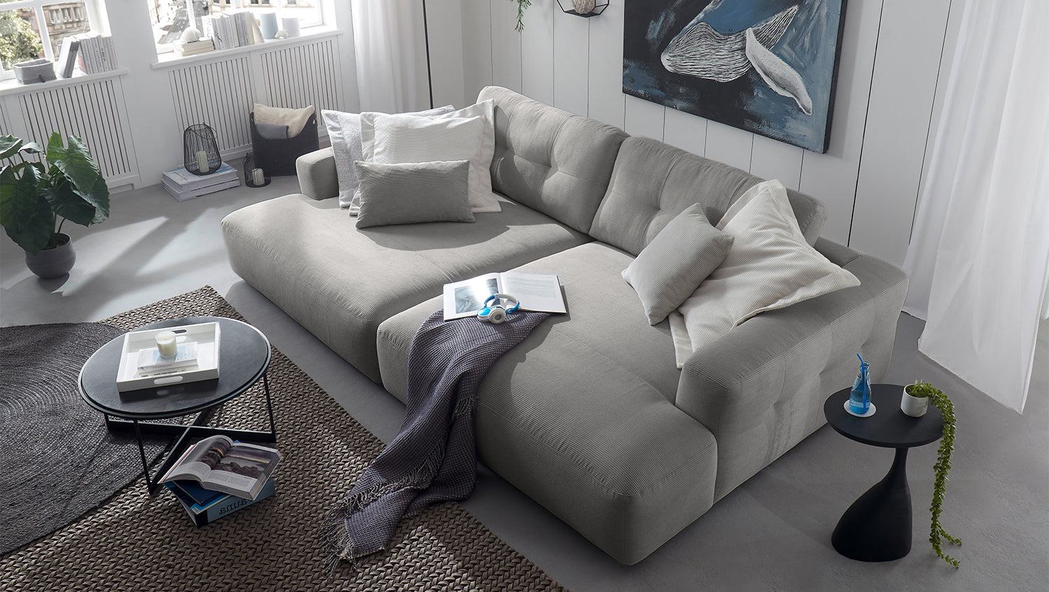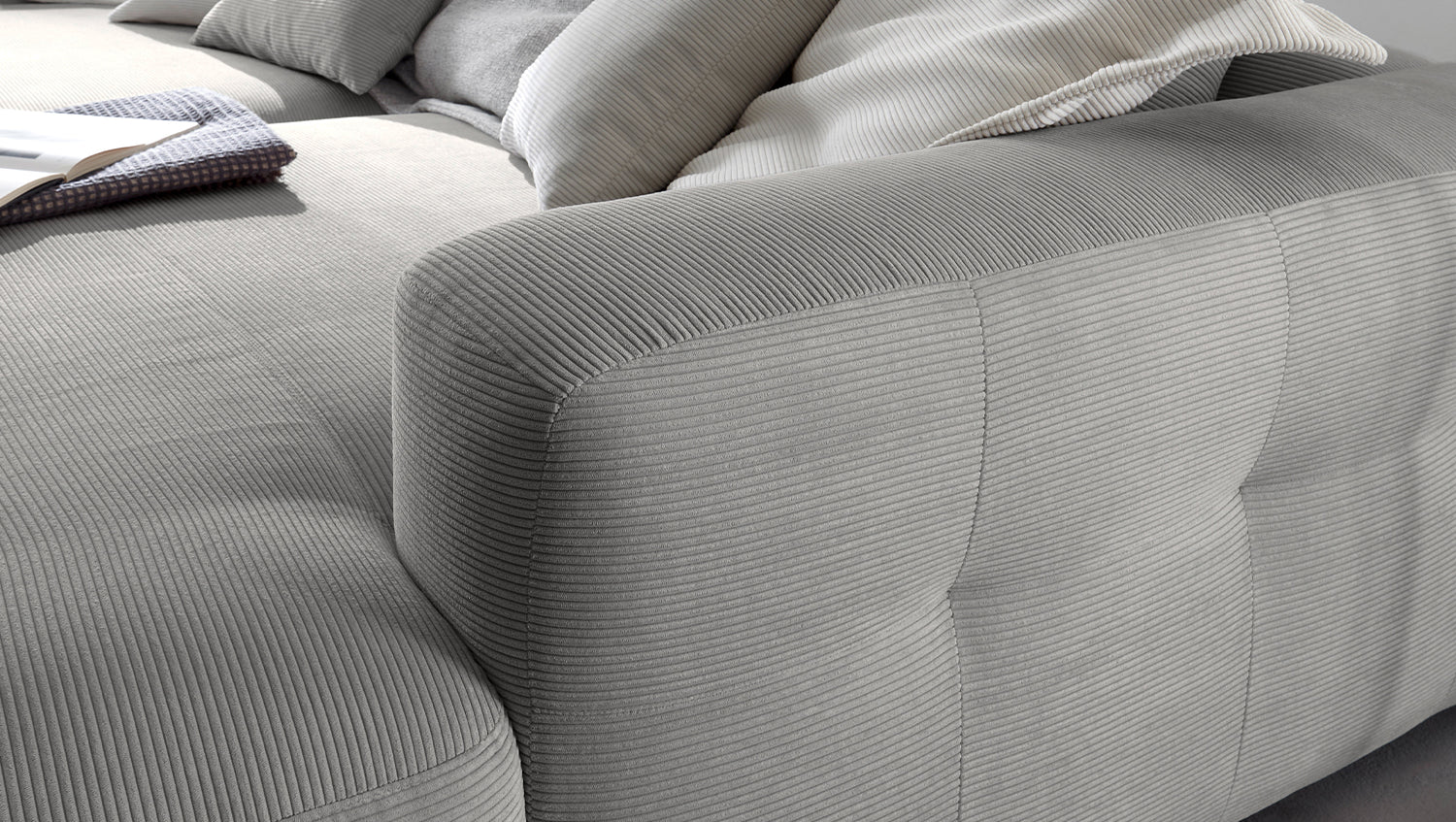 KAWOLA Sofá extra ancho MIKA pana fina gris