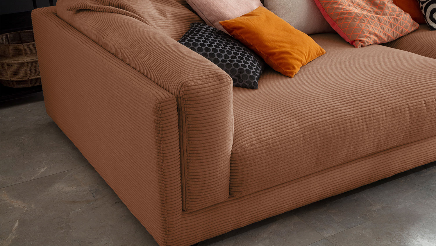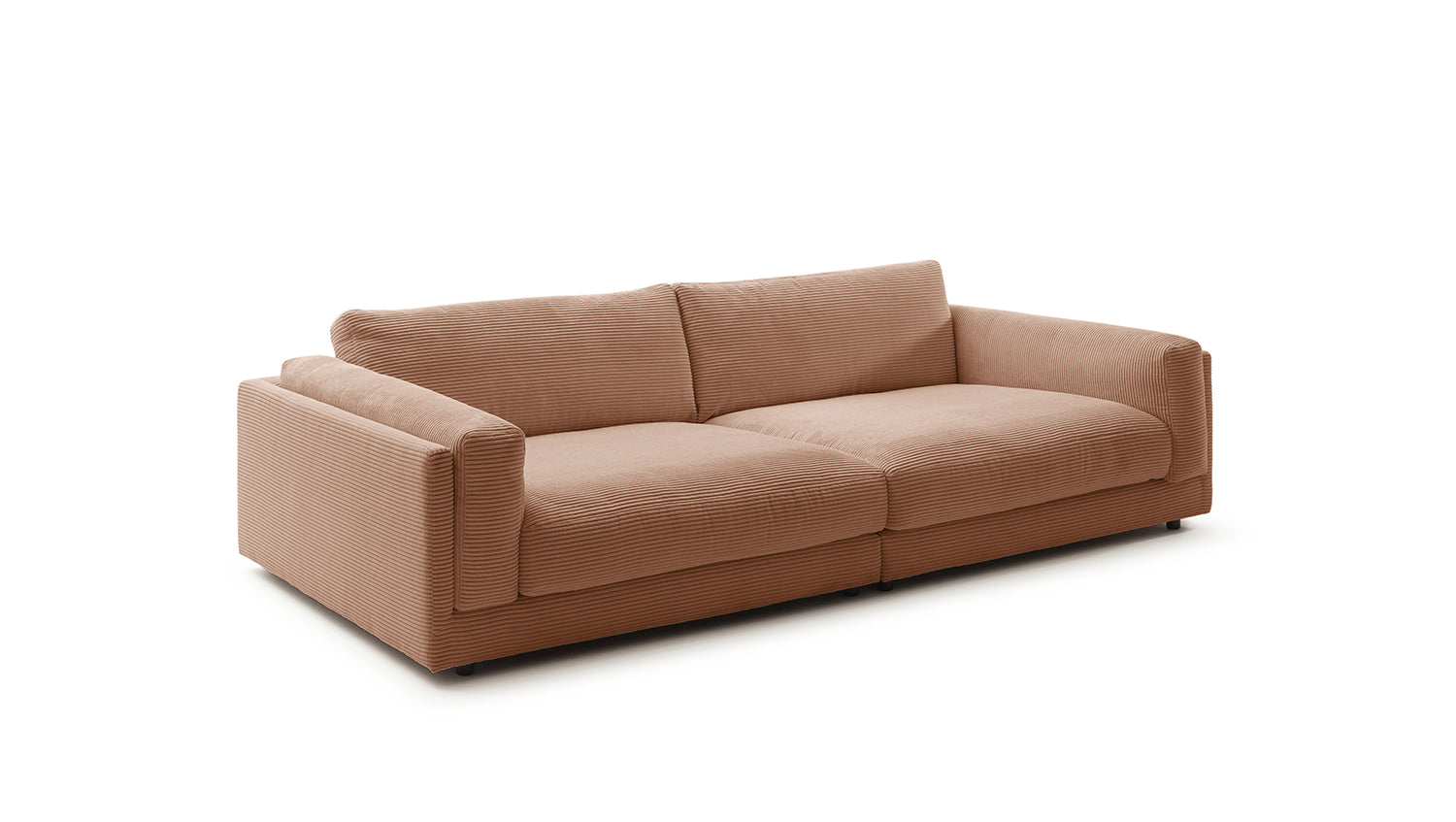 Descubra el lujoso Sofá extra ancho RAINA de KAWOLA: una fusión magistral de confort y estilo. Con su generoso revestimiento integral en el moderno tejido de pana, el RAINA atraerá todas las miradas en cualquier salón. La pana, conocida por su suavidad y durabilidad, le da al sofá un toque moderno y está absolutamente de moda en este momento. Disfrute de la comodidad de asiento de firmeza media, que es perfecta para relajadas veladas para tres. Con una impresionante anchura de 294 cm y una generosa profundidad de asiento de 104 cm, el RAINA ofrece espacio suficiente para todos. Gracias al bajo riesgo de pilling, la tapicería de pana conserva su aspecto inmaculado durante mucho tiempo. La suspensión de muelles ondulados en el asiento proporciona un apoyo agradable, mientras que la tapicería de espuma PUR de alta calidad garantiza un confort duradero. El Sofá extra ancho RAINA de KAWOLA le ofrece la máxima comodidad de asiento y un estilo atemporal. Consiga ya este cómodo y moderno mueble para su hogar.