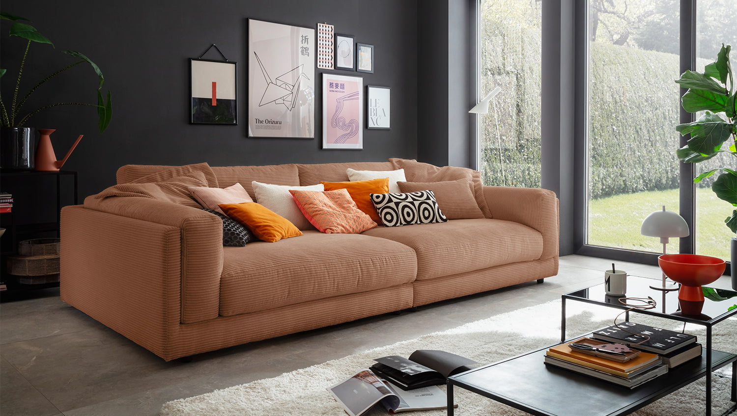 KAWOLA Sofá extra ancho RAINA Pana óxido