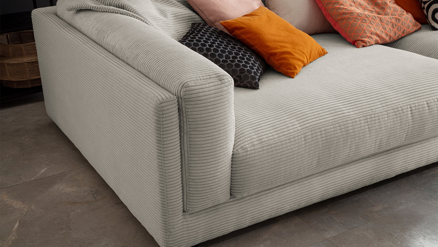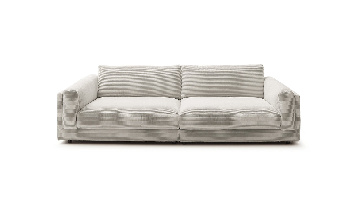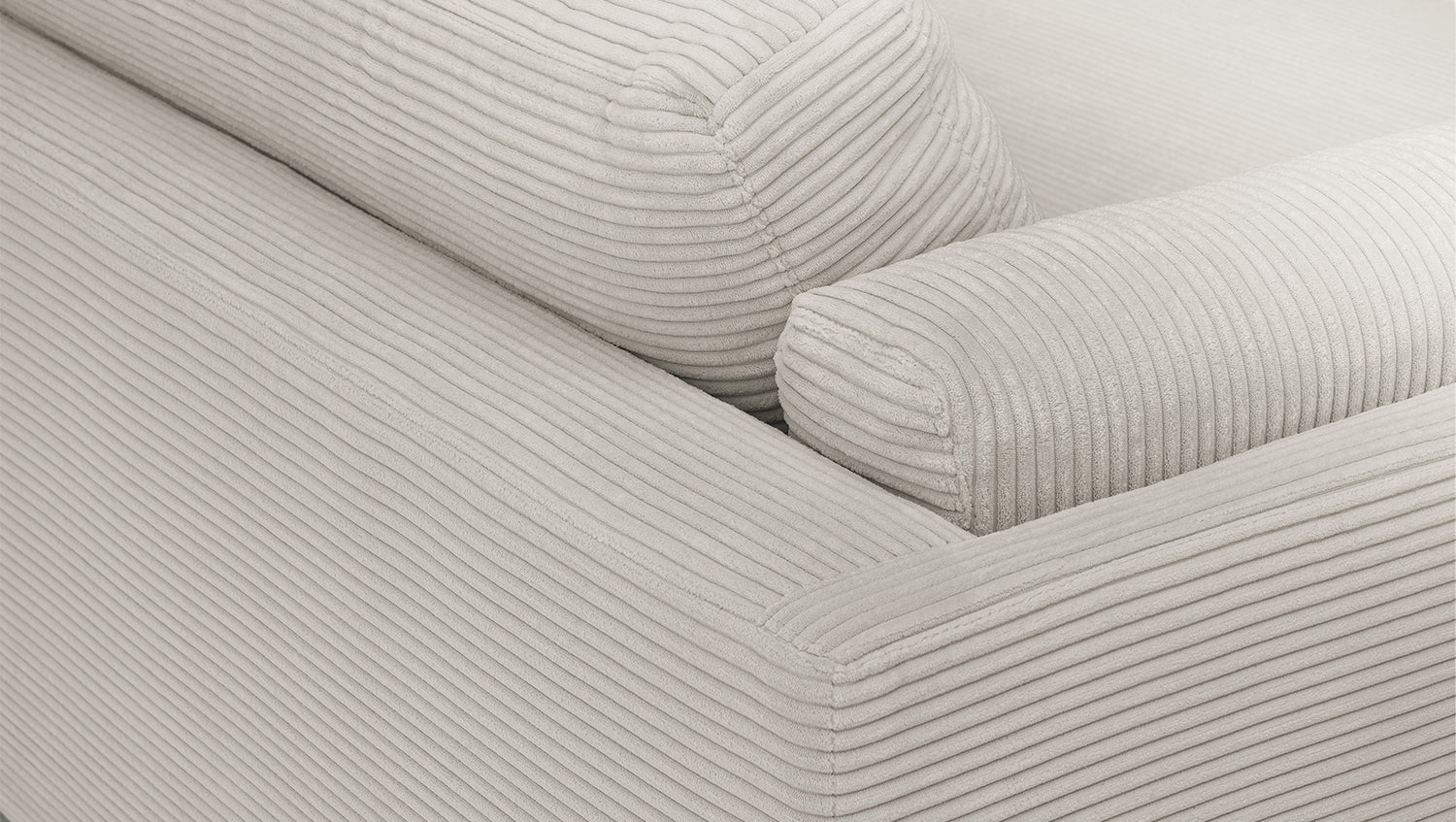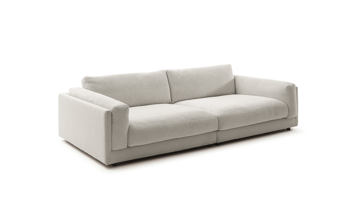 Descubra el lujoso Sofá extra ancho RAINA de KAWOLA: una fusión magistral de confort y estilo. Con su generoso revestimiento integral en el moderno tejido de pana, el RAINA atraerá todas las miradas en cualquier salón. La pana, conocida por su suavidad y durabilidad, le da al sofá un toque moderno y está absolutamente de moda en este momento. Disfrute de la comodidad de asiento de firmeza media, que es perfecta para relajadas veladas para tres. Con una impresionante anchura de 294 cm y una generosa profundidad de asiento de 104 cm, el RAINA ofrece espacio suficiente para todos. Gracias al bajo riesgo de pilling, la tapicería de pana conserva su aspecto inmaculado durante mucho tiempo. La suspensión de muelles ondulados en el asiento proporciona un apoyo agradable, mientras que la tapicería de espuma PUR de alta calidad garantiza un confort duradero. El Sofá extra ancho RAINA de KAWOLA le ofrece la máxima comodidad de asiento y un estilo atemporal. Consiga ya este cómodo y moderno mueble para su hogar.