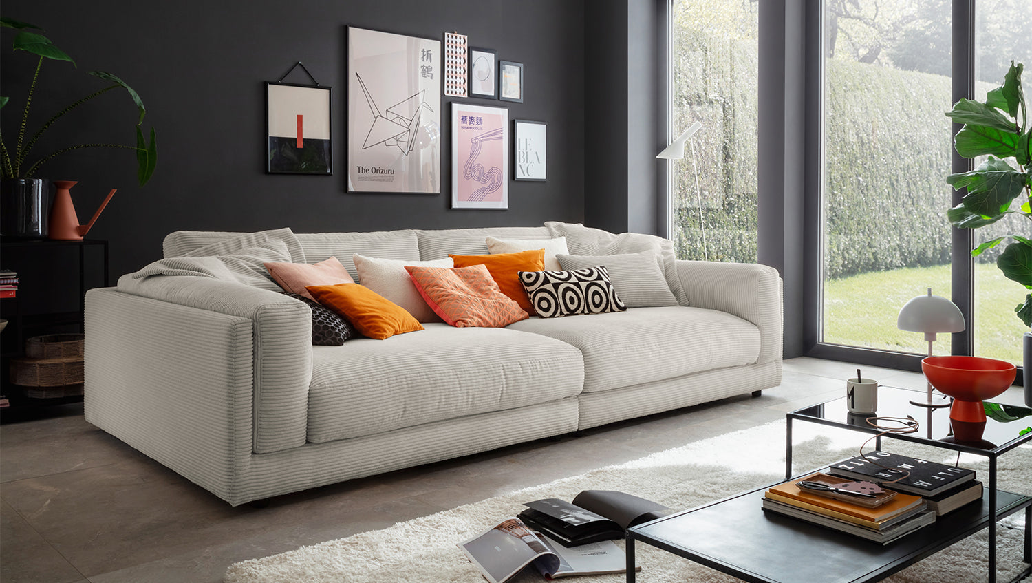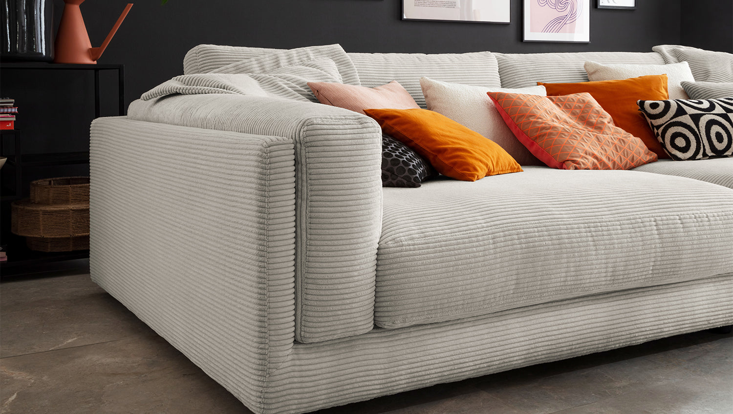 KAWOLA Sofá extra ancho RAINA Pana gris piedra