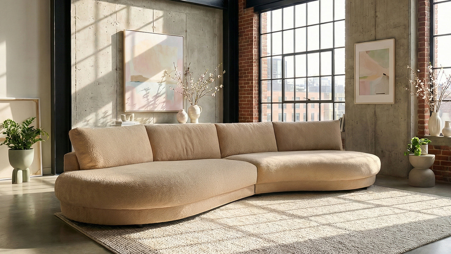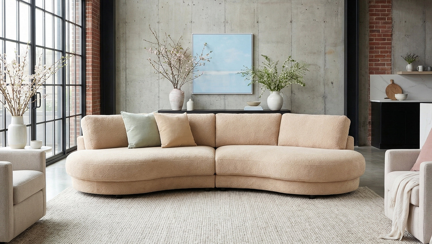 El sofá extra ancho PADANA de KAWOLA es una auténtica pieza estrella para los salones modernos. Con su impresionante anchura de 410 cm y una cómoda profundidad de 166 cm, ofrece un espacio extraordinario para relajarse, descansar y pasar tiempo en compañía. Su forma orgánica y suavemente curvada confiere al sofá un aspecto suave y acogedor, convirtiéndolo en el centro de atención de cualquier salón. El tapizado de chenilla de alta calidad no solo convence a la vista, sino también al tacto: su textura recuerda discretamente a la lana de oveja y aporta un aspecto especialmente acogedor y cálido. Al mismo tiempo, el material se caracteriza por una formación de bolitas muy reducida, lo que garantiza una superficie siempre bonita incluso con un uso intensivo. Gracias a su tapizado integral, el PADANA también se puede colocar libremente en cualquier punto de la habitación. En su interior, una estructura estable de madera maciza garantiza durabilidad y estabilidad. El asiento está equipado con muelles ondulados de acero de elasticidad duradera y se complementa con espuma de poliuretano de alta calidad. Esta combinación garantiza un confort de asiento agradable con un soporte óptimo. El sofá extra ancho PADANA combina dimensiones generosas, materiales de alta calidad y un diseño atemporal en un mueble que redefine el concepto de comodidad. Ideal para todos aquellos que aprecian un espacio extraordinario y una comodidad con estilo.