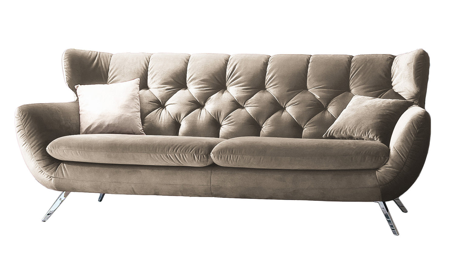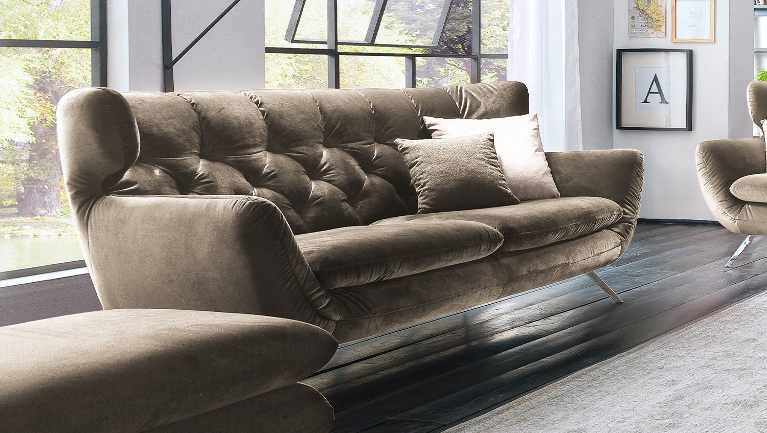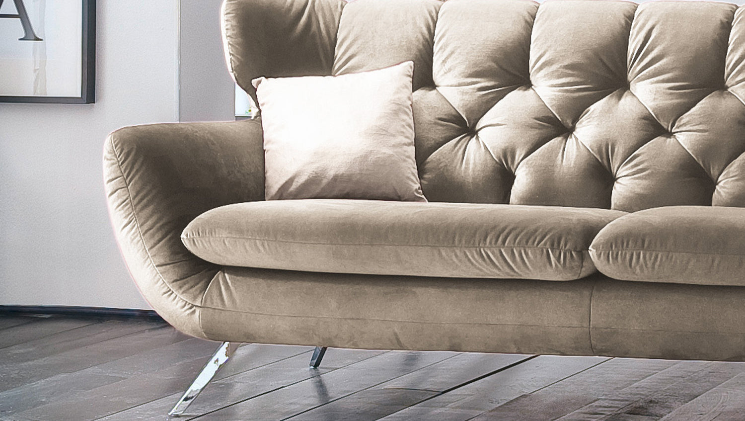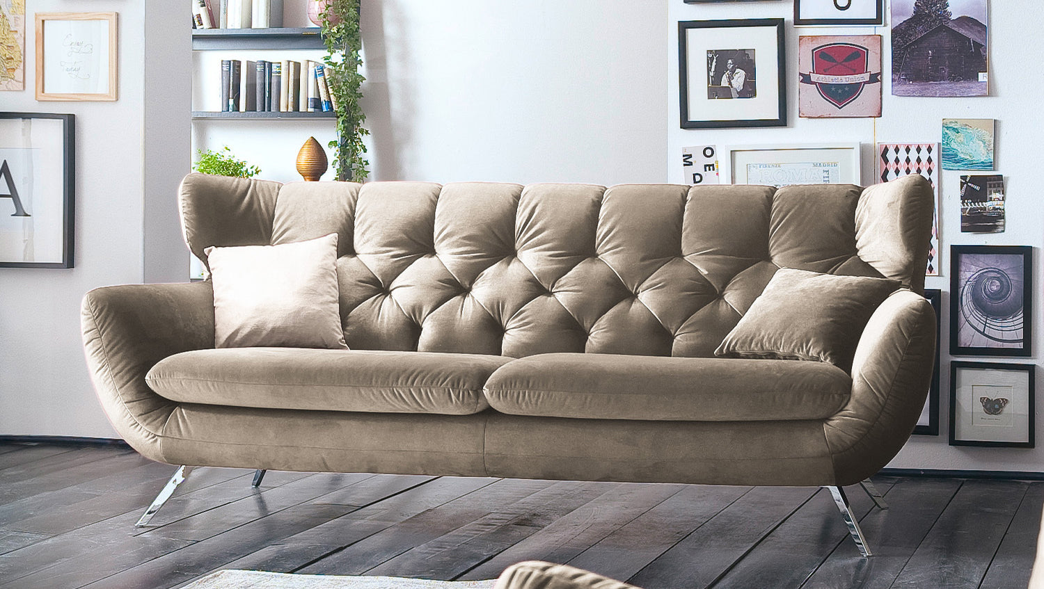 El sofá CHARME de KAWOLA es algo muy especial. El estilo del sofá CHARME recuerda a los años sesenta: el respaldo está elaboradamente acolchado sin botones; el respaldo está ligeramente curvado hacia delante en ambos lados y recuerda a la forma de un sillón de orejas; los pies metálicos están ligeramente acampanados. La tapicería del sofá es de espuma de poliuretano e impresiona por su comodidad suave y desenfadada. Los cojines del asiento se adaptan cómodamente a la forma del cuerpo y, por supuesto, el sofá está completamente tapizado en terciopelo para que también pueda colocarse en cualquier lugar de la habitación. Si no busca un simple sofá, sino un punto de atracción muy especial, ¡el sofá KAWOLA CHARME es la elección perfecta!
