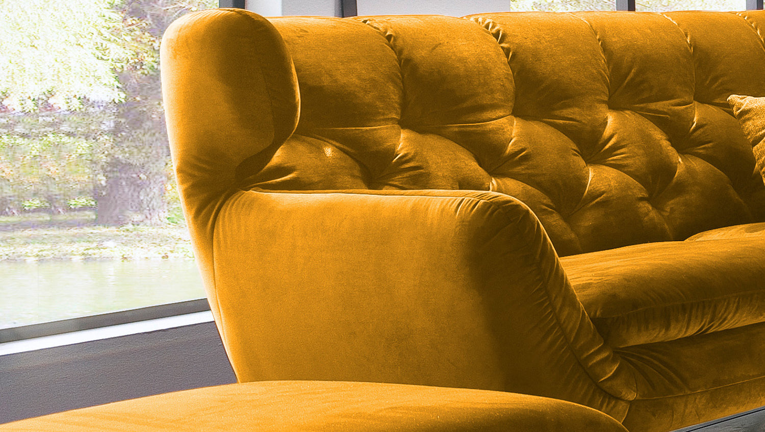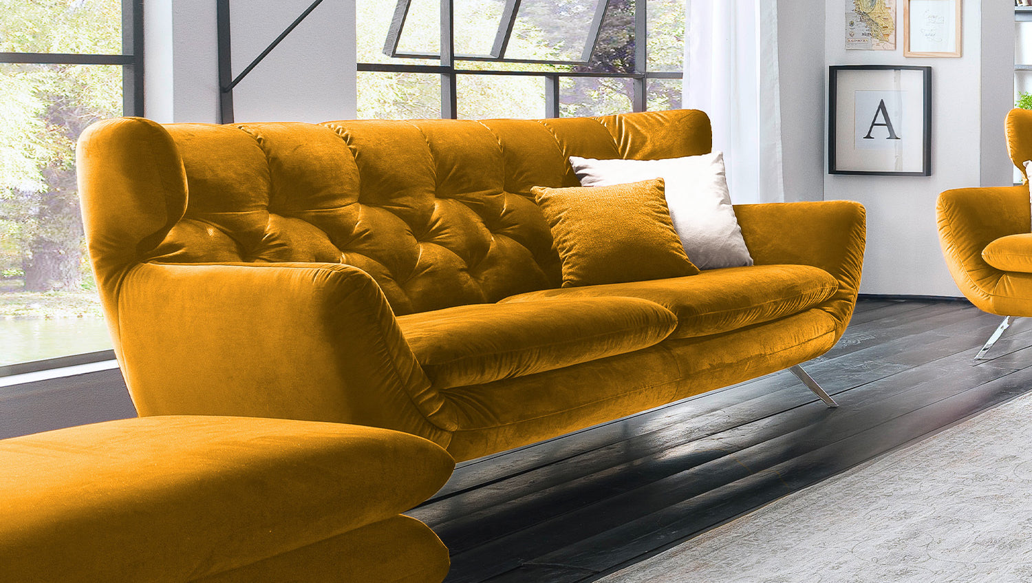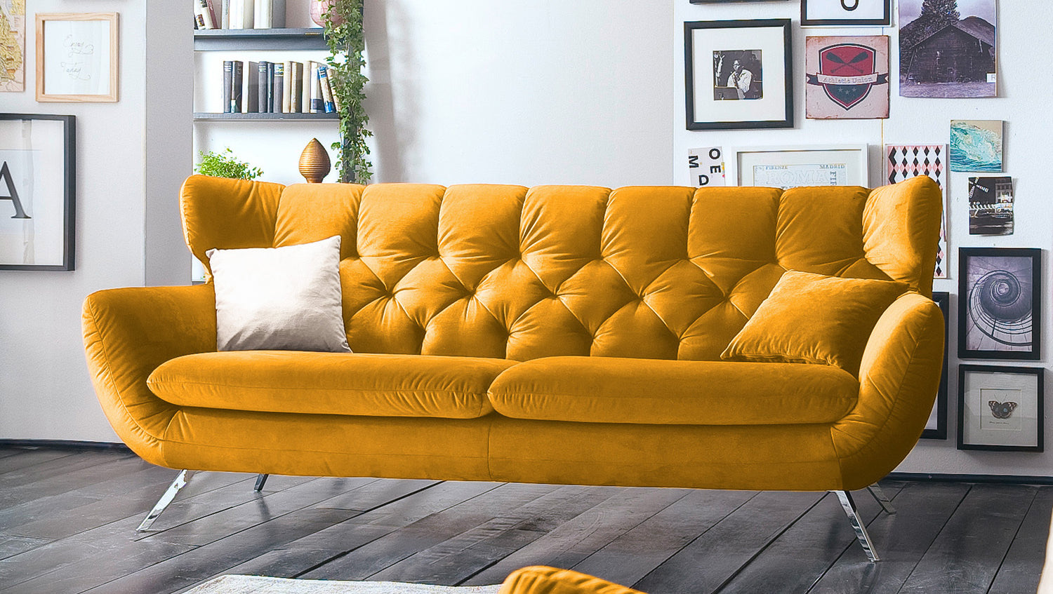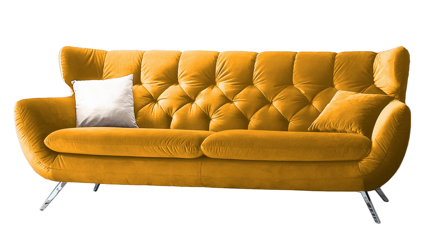 El sofá CHARME de KAWOLA es algo muy especial. El estilo del sofá CHARME recuerda a los años sesenta: el respaldo está elaboradamente acolchado sin botones; el respaldo está ligeramente curvado hacia delante en ambos lados y recuerda a la forma de un sillón de orejas; los pies metálicos están ligeramente acampanados. La tapicería del sofá es de espuma de poliuretano e impresiona por su comodidad suave y desenfadada. Los cojines del asiento se adaptan cómodamente a la forma del cuerpo y, por supuesto, el sofá está completamente tapizado en terciopelo para que también pueda colocarse en cualquier lugar de la habitación. Si no busca un simple sofá, sino un punto de atracción muy especial, ¡el sofá KAWOLA CHARME es la elección perfecta!