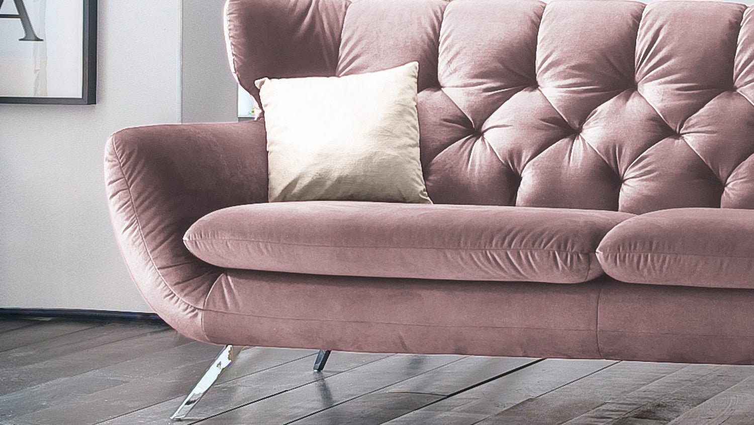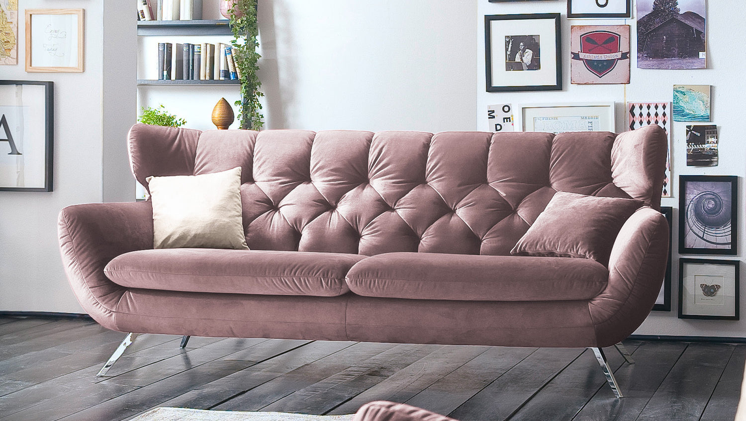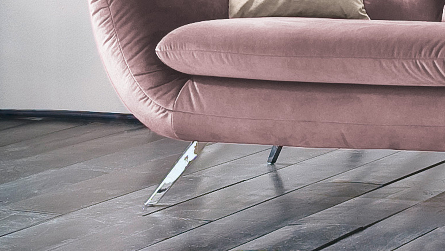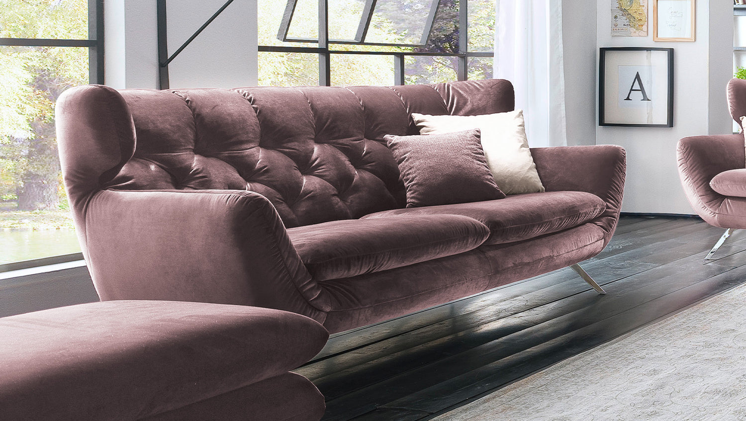 KAWOLA Sofá CHARME Terciopelo gris rosa