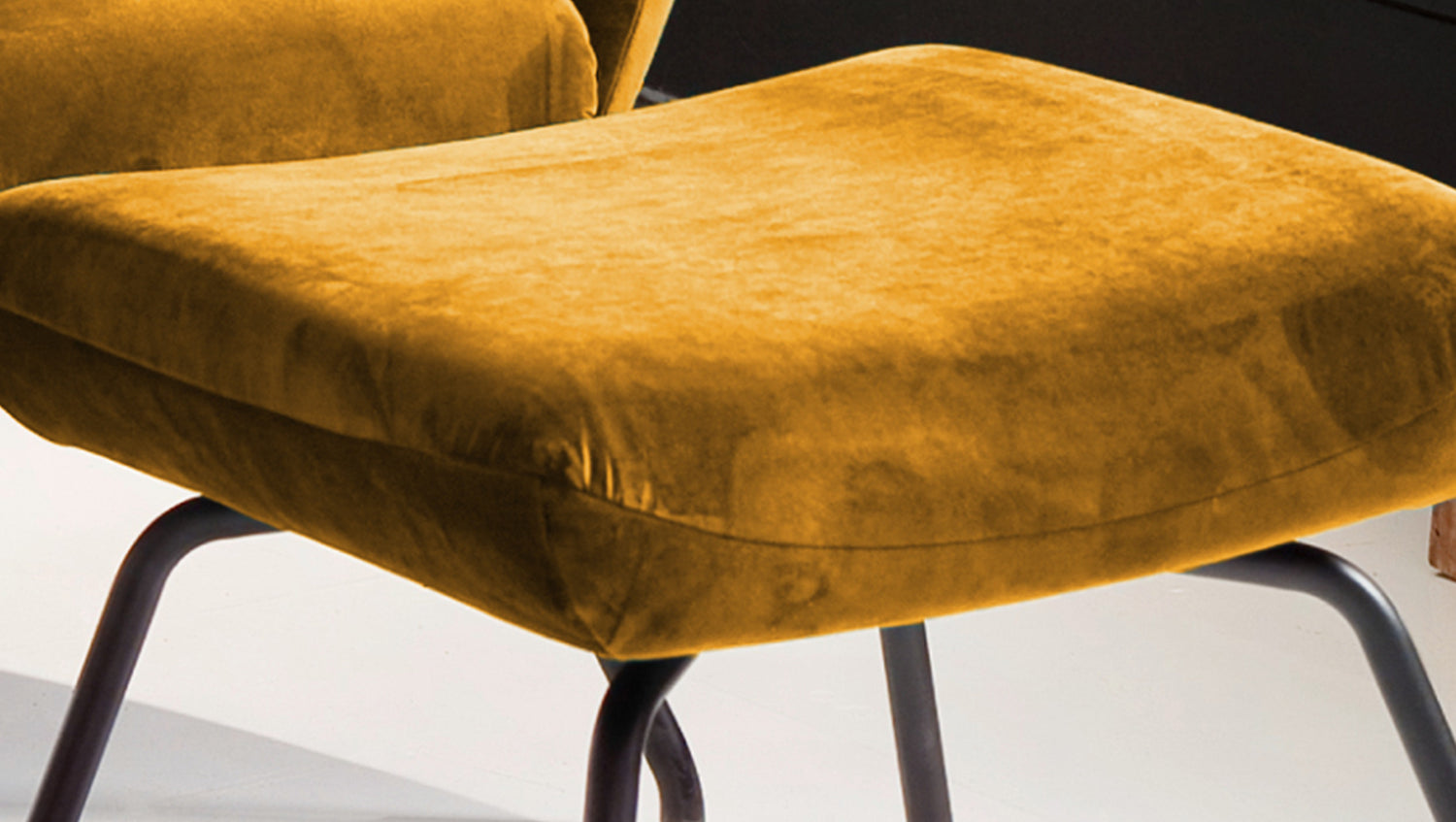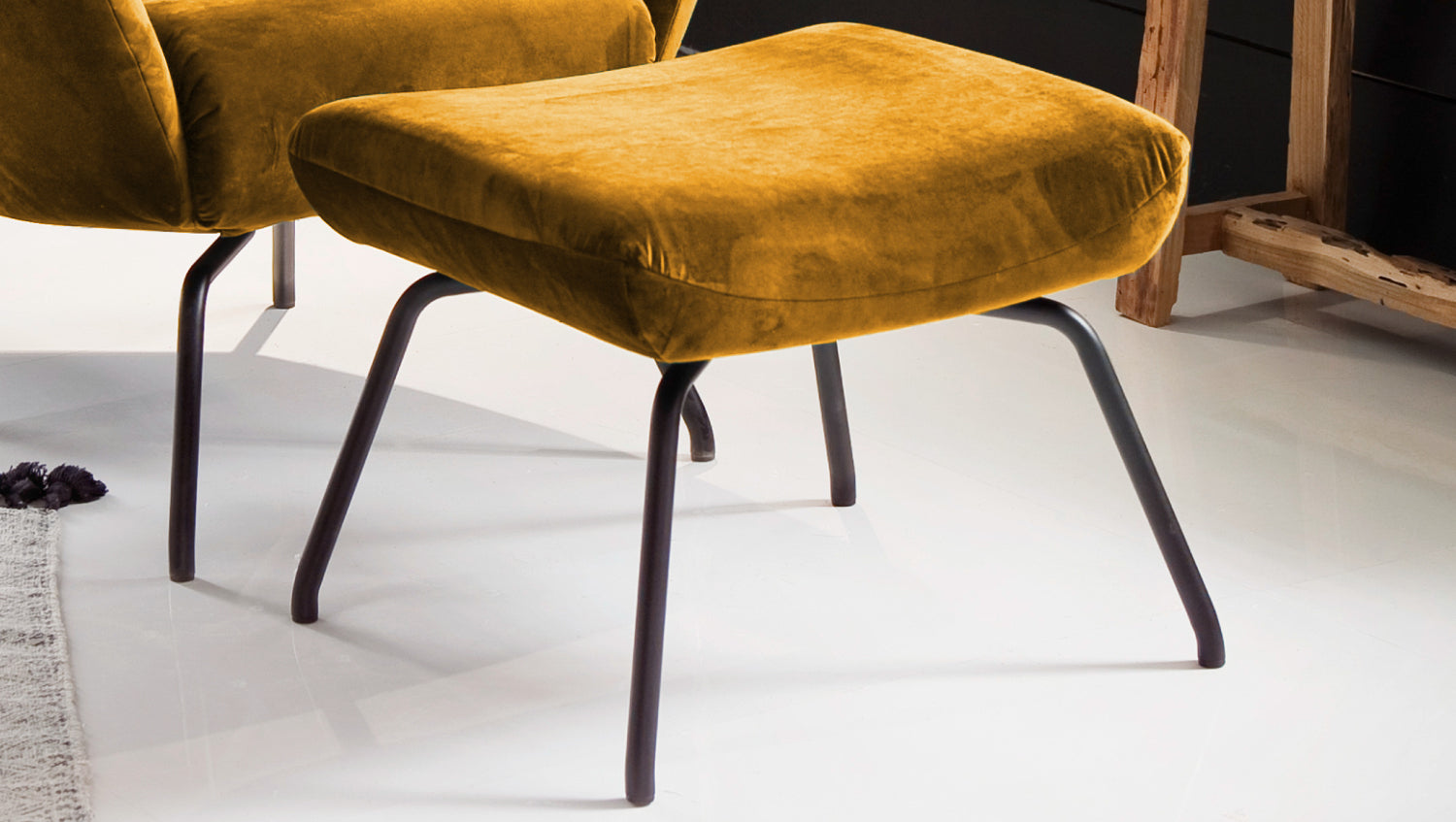 KAWOLA Puf LOTTE taburete tapizado terciopelo curry