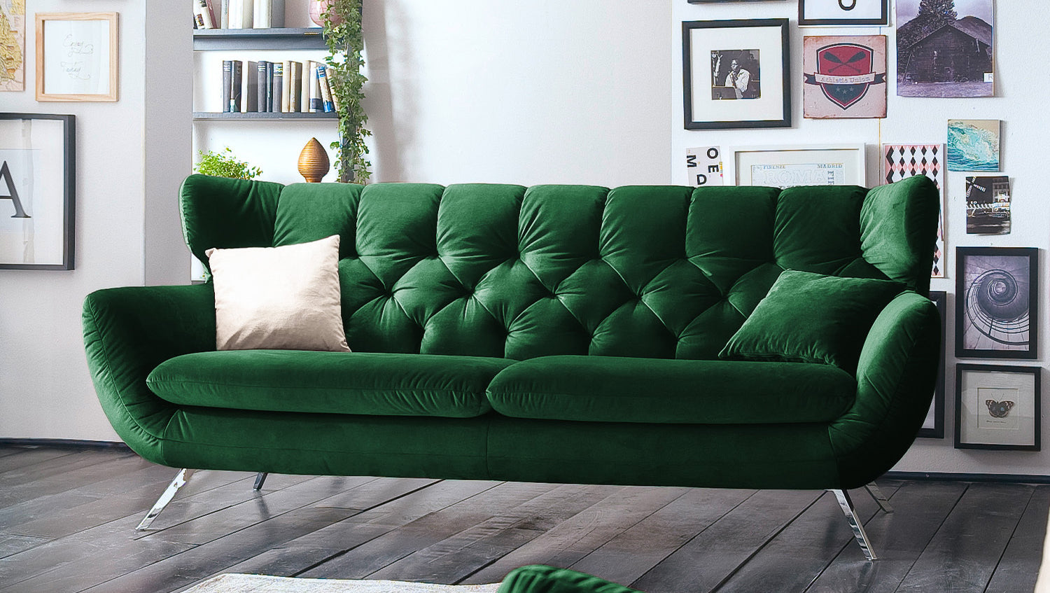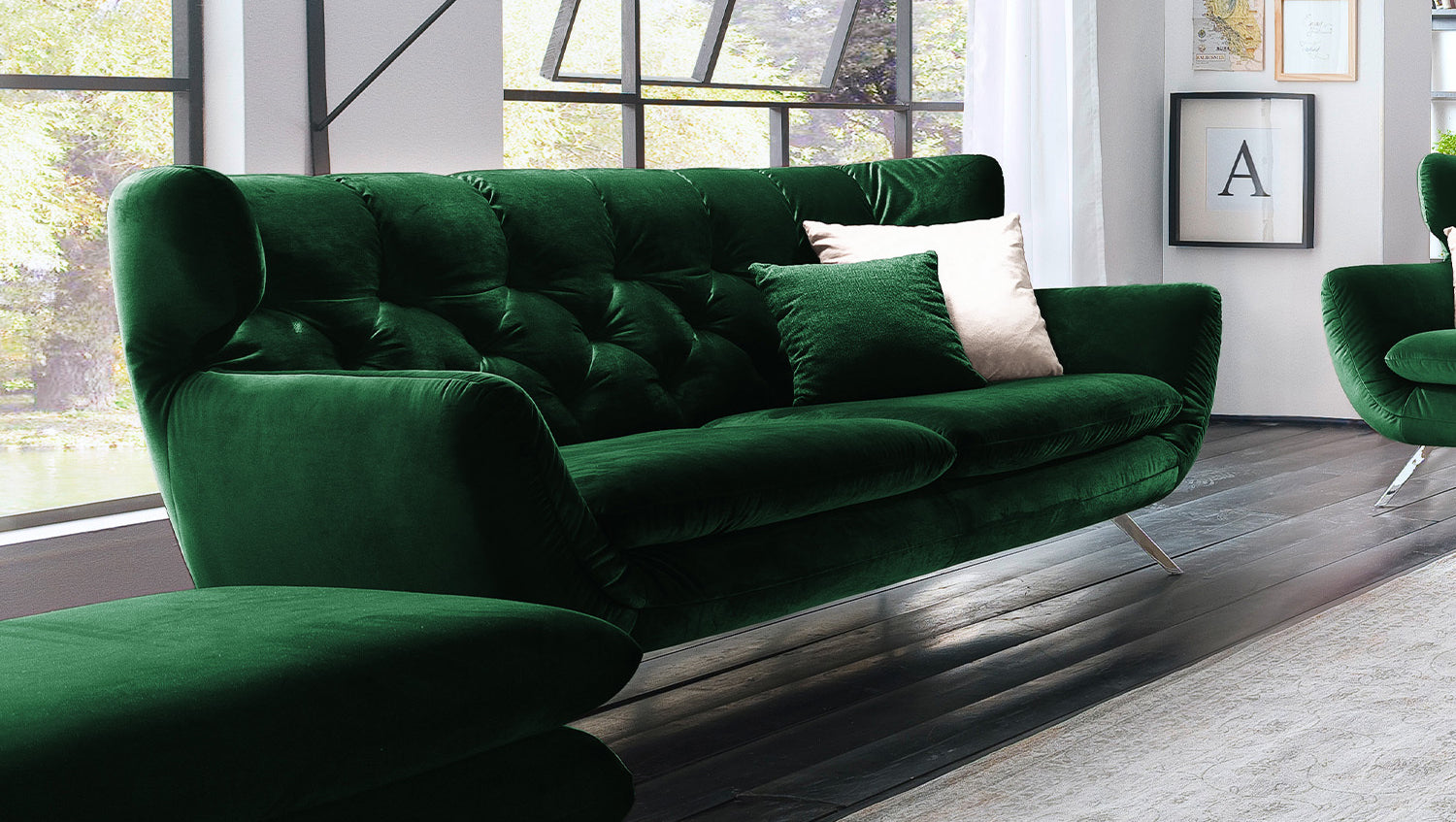 KAWOLA Sofá CHARME Terciopelo esmeralda