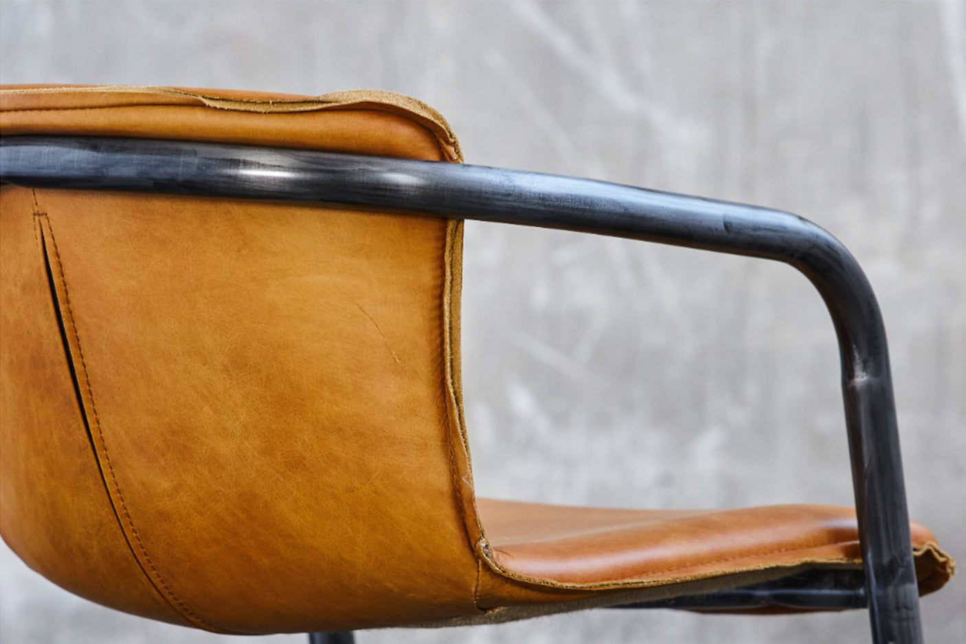 La silla KAWOLA FILLY parece ingrávida gracias a su asiento en voladizo. Esto se debe al armazón de acero, que confiere a la silla la estabilidad deseada sin restarle ligereza. La silla en voladizo pone de relieve un lenguaje de diseño bello y claro. El clásico armazón negro parece haber sido fundido a partir de un único molde y no presenta bordes duros, sino transiciones curvas. El asiento y el respaldo, de cuero vintage de fácil cuidado, constan de un segmento cada uno. La costura que sobresale hacia el respaldo aporta un cambio descarado e inspirado en el diseño. La piel vintage es muy cálida y suave al tacto, y además es totalmente transpirable. Los poros abiertos también permiten que la temperatura se iguale al tocar el cuero, lo que hace que se sienta agradable y cálido. La aplicación de una capa de cera o de un acabado de efecto llamado confiere al cuero un aspecto antiguo. Las diferencias de color y las características naturales visibles, como picaduras de mosquito y cicatrices, muestran la autenticidad de la piel, que desarrolla su carácter individual con el uso gracias a sus poros abiertos.