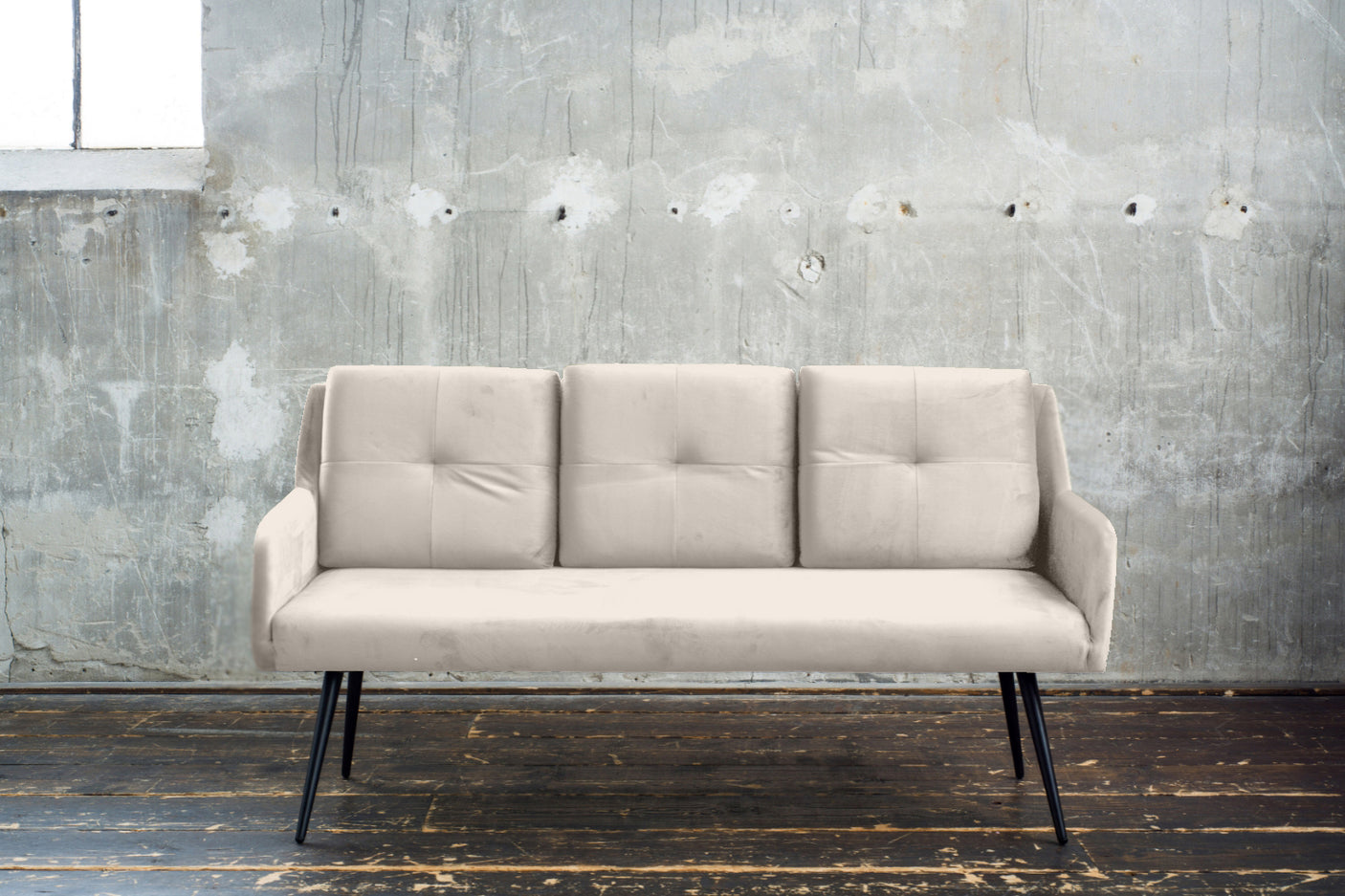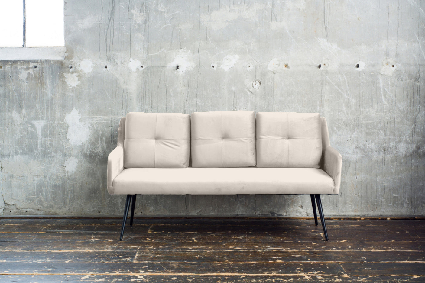 El banco de comedor PIRI de KAWOLA combina un diseño elegante con un confort excepcional y destaca en cualquier comedor. Con una generosa anchura de 180 cm, una profundidad de 64 cm y una altura de 84 cm, el Banco tapizado ofrece mucho espacio para socializar. La elegante funda de terciopelo confiere al banco un aspecto especialmente elegante y un tacto agradable. Con una altura de asiento de 48 cm, una profundidad de asiento de 46 cm y una anchura de asiento de 165 cm, el banco está diseñado para ofrecer un alto nivel de comodidad. Las robustas patas de hierro con recubrimiento en polvo de color negro garantizan estabilidad y un diseño moderno que puede integrarse perfectamente en diversos estilos de decoración. El banco de comedor PIRI es la elección perfecta para todo aquel que desee combinar un confort de alta calidad con un aspecto moderno y lujoso.