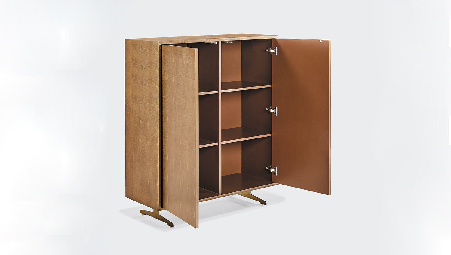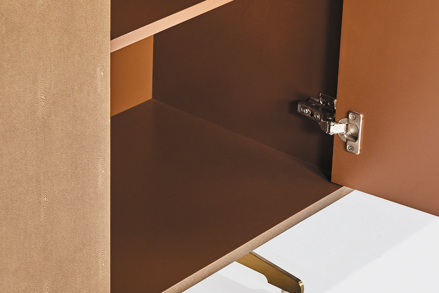 El aparador alto KAWOLA GALA convence por su elegante combinación de diseño moderno y funcionalidad práctica. El cuerpo y las puertas están elegantemente tapizados en piel sintética de alta calidad de color dorado, lo que confiere al mueble un aspecto lujoso. Las dos puertas ofrecen un amplio espacio de almacenamiento y pueden abrirse sin esfuerzo gracias al cómodo mecanismo de apertura a presión. Las patas de patín de acero inoxidable cepillado de color dorado crean un aspecto moderno y atemporal a la vez que proporcionan estabilidad. Los estantes variables permiten un uso flexible del interior y se adaptan a sus necesidades. El armario alto GALA de KAWOLA se integra perfectamente en cualquier ambiente y es ideal para los amantes de los muebles sencillos pero elegantes. Descubra la combinación perfecta de diseño y funcionalidad con el armario alto GALA.