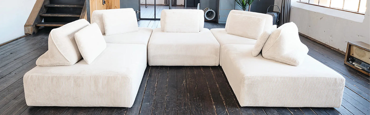 Elija entre sofás de esquina, sofás modulares, divanes, taburetes y mucho más: WIOLO se adapta de forma flexible a su estilo de vida.