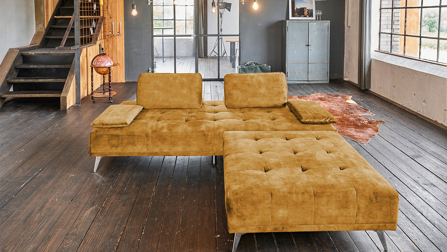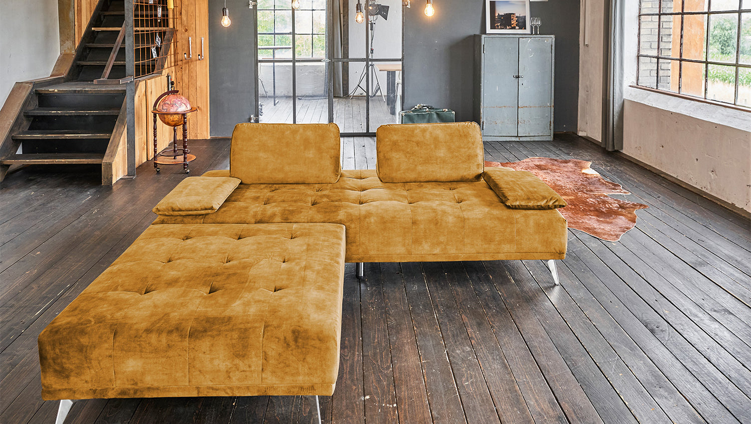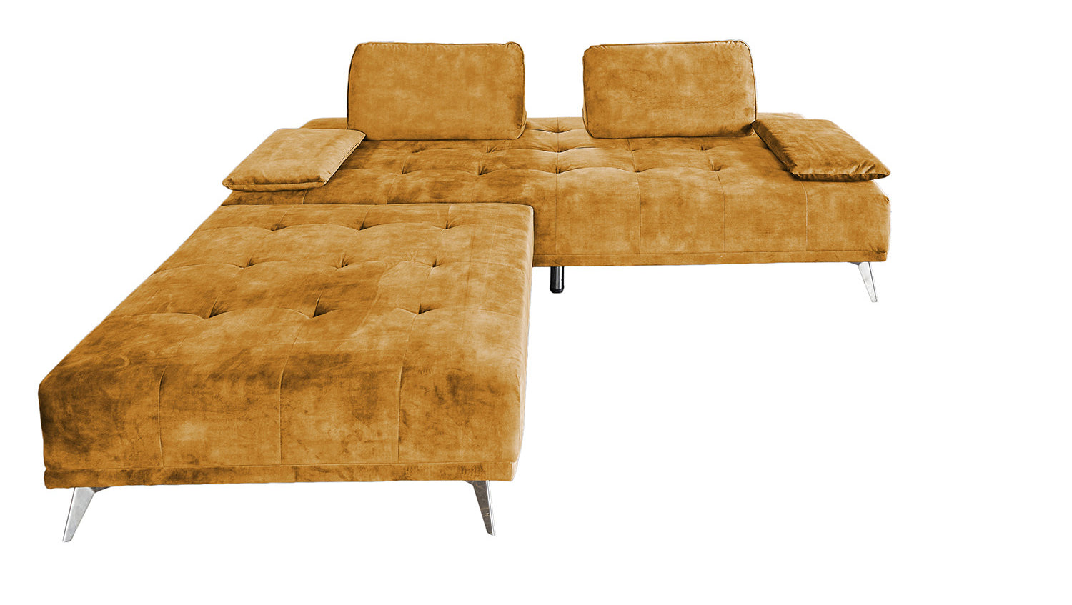El sofá WIOLO de KAWOLA combina un diseño elegante con un alto nivel de confort. El elegante acolchado del asiento, la agradable funda de terciopelo en color coñac y los pies de metal con filigranas hacen de este sofá un auténtico reclamo. Pero el moderno sofá cama no es sólo atractivo a la vista. Ofrece varias opciones de uso. Utilícelo como un elegante sofá para su salón. Lo más destacado: los cojines del respaldo se pueden distribuir y mover individualmente según se desee. Esto le permite adoptar la posición sentada o reclinada más cómoda para usted. Puede transformar el sofá en un cómodo sofá cama para sus invitados en un abrir y cerrar de ojos retirando los cojines del respaldo. La cómoda superficie reclinable ofrece mucho espacio para relajarse. El Puf a juego completa el conjunto y aporta aún más flexibilidad al salón. Ya sea como sofá para sentarse o como sofá cama para reclinarse, WIOLO añade elegancia y comodidad a cualquier habitación. Disfrute de horas de relax en su nuevo sofá Velvet. WIOLO es el mueble perfecto para cualquiera que valore el diseño y la funcionalidad. Experimente la diferencia con este cómodo sofá cama.