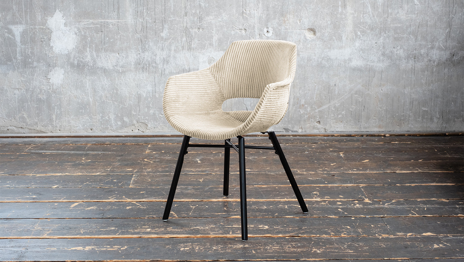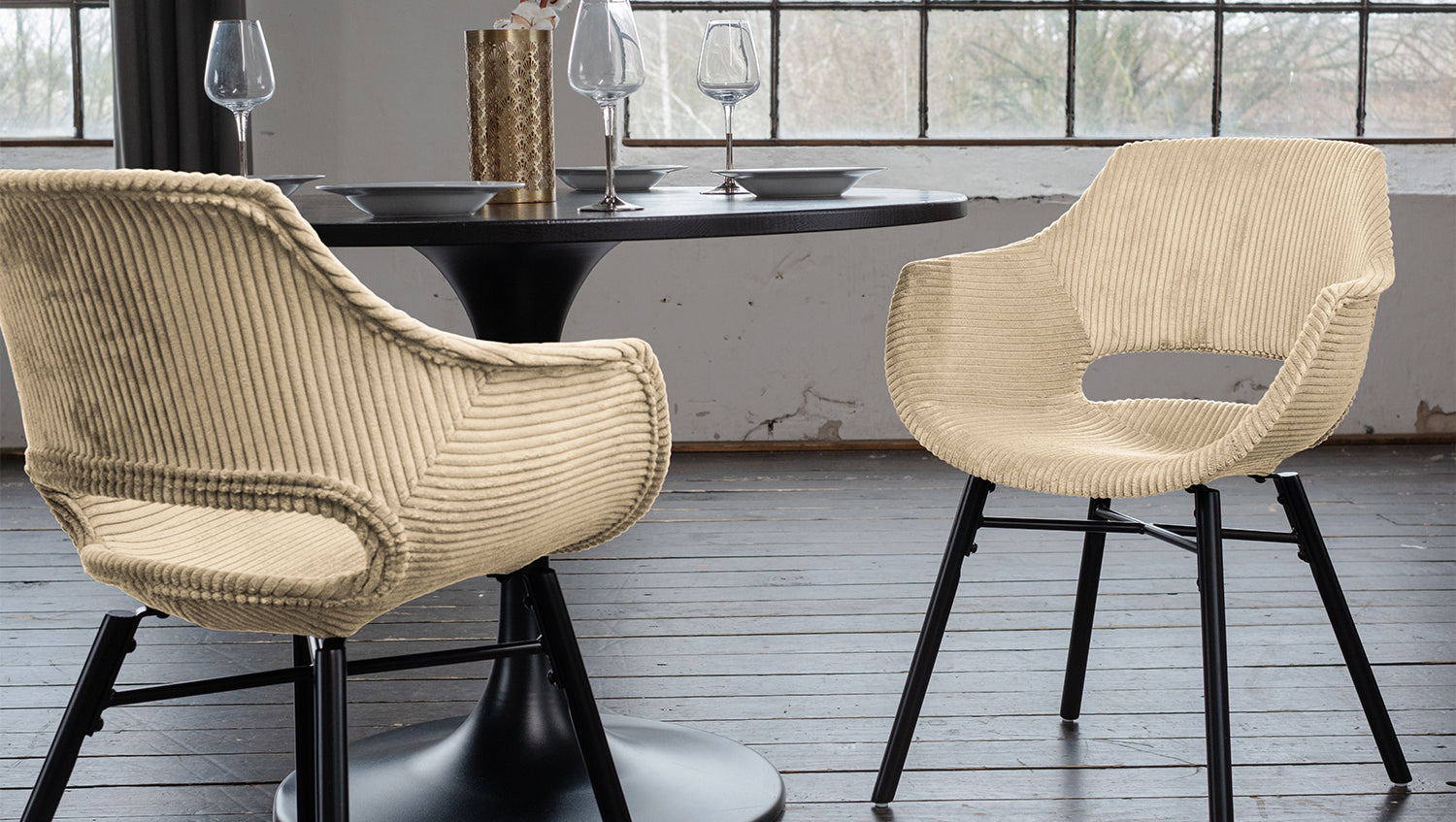 Silla KAWOLA Silla de comedor ZAJA Cord crema blanco