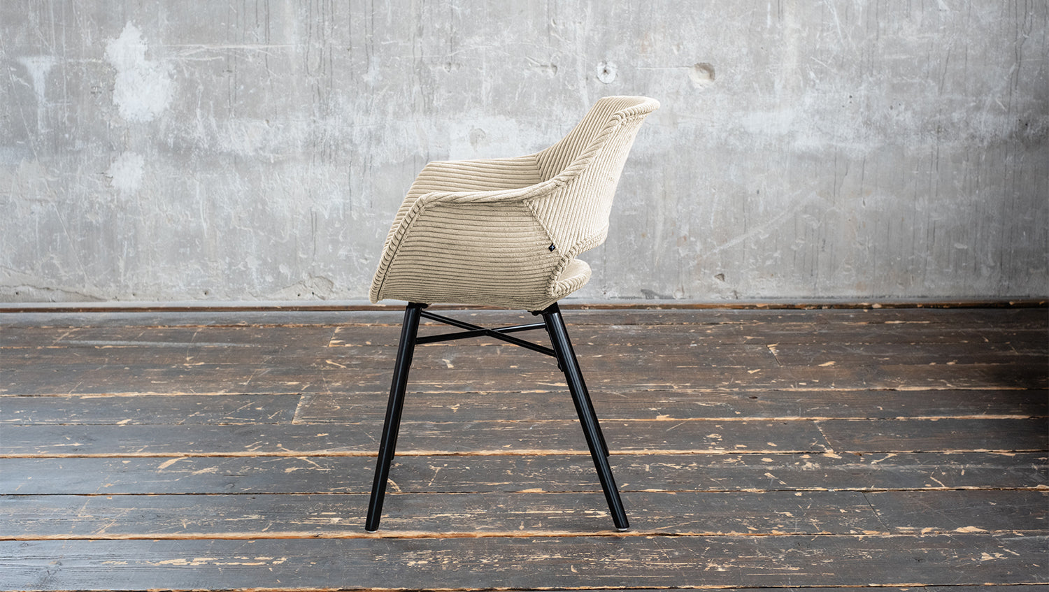La silla tapizada ZAJA combina con elegancia comodidad y diseño moderno. La moderna funda de pana combinada con las patas de madera lacadas en negro hacen de esta silla de comedor un elemento destacado en cualquier comedor. Disfrute de horas de relax en la Mesa de comedor o utilice la silla como un cómodo asiento en el estudio. La robusta estructura metálica garantiza una gran capacidad de carga y durabilidad, mientras que la tela de pana no sólo es visualmente atractiva, sino también especialmente fácil de limpiar. Las pequeñas manchas pueden eliminarse fácilmente, de modo que la silla de comedor luce como nueva durante mucho tiempo. Su forma ergonómica y su agradable tapizado ofrecen un alto nivel de confort incluso cuando se está sentado durante largos periodos de tiempo. Ya sea en la cocina, en el comedor o en el despacho de casa, esta moderna silla de comedor se integra armoniosamente en cualquier ambiente. Las líneas claras y los materiales de alta calidad la convierten en un mueble atemporal que disfrutará durante mucho tiempo. Su estudiado diseño garantiza estabilidad y una gran capacidad de carga.