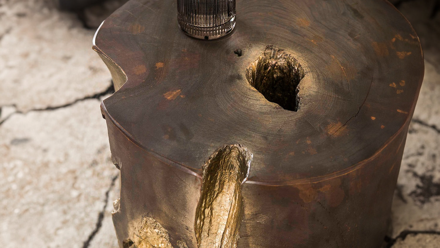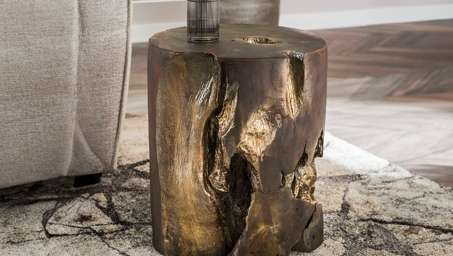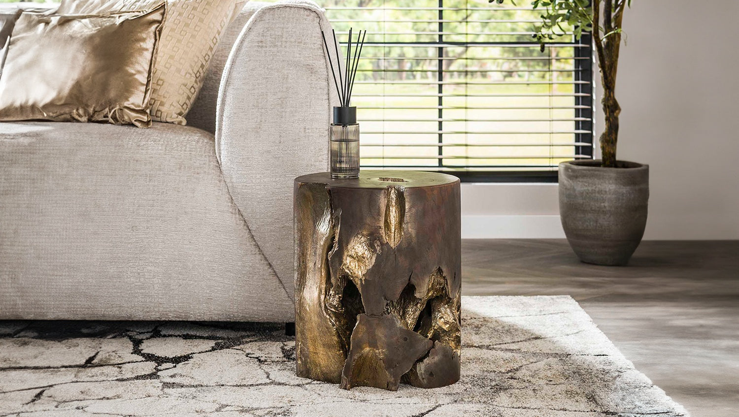 Der Beistelltisch KURA von KAWOLA ist ein echtes Highlight für stilbewusste Wohnräume. Er ist aus massivem Teakholz gefertigt und besticht durch seine einzigartige Formgebung. Der Tisch ist in einem dunkelgrauen Finish mit goldenen Akzenten ausgeführt. Jeder Tisch ist einzigartig und handgefertigt - ein echtes Must-Have! Mit einem Durchmesser von 35 cm und einer Höhe von 40 cm findet sich für den KURA Besitelltisch überall ein Plätzchen. Der Couchtisch KURA ist nicht nur funktional, sondern auch ein handgefertigtes Designstück mit Charakter – perfekt für alle, die Individualität und Qualität schätzen.