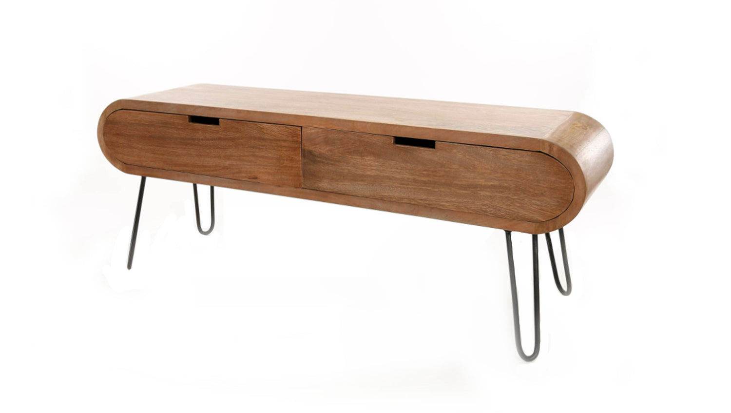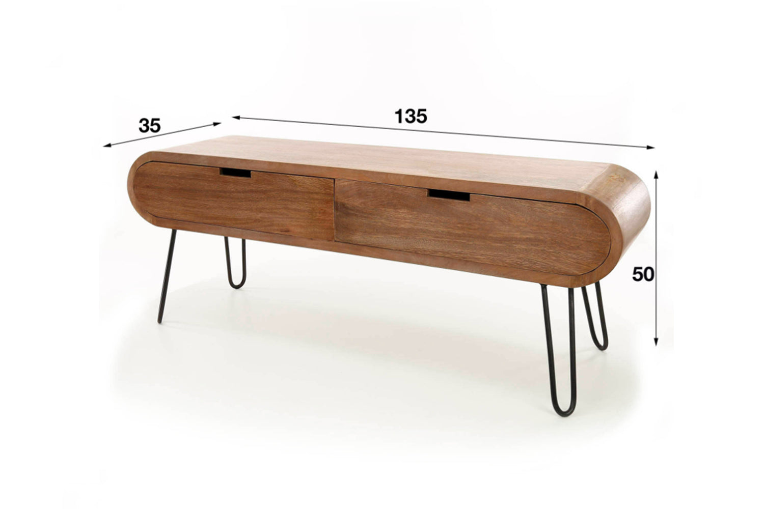 KAWOLA Lowboard EVORA TV-Board Mango massiv sandfarben 2 Schubladen