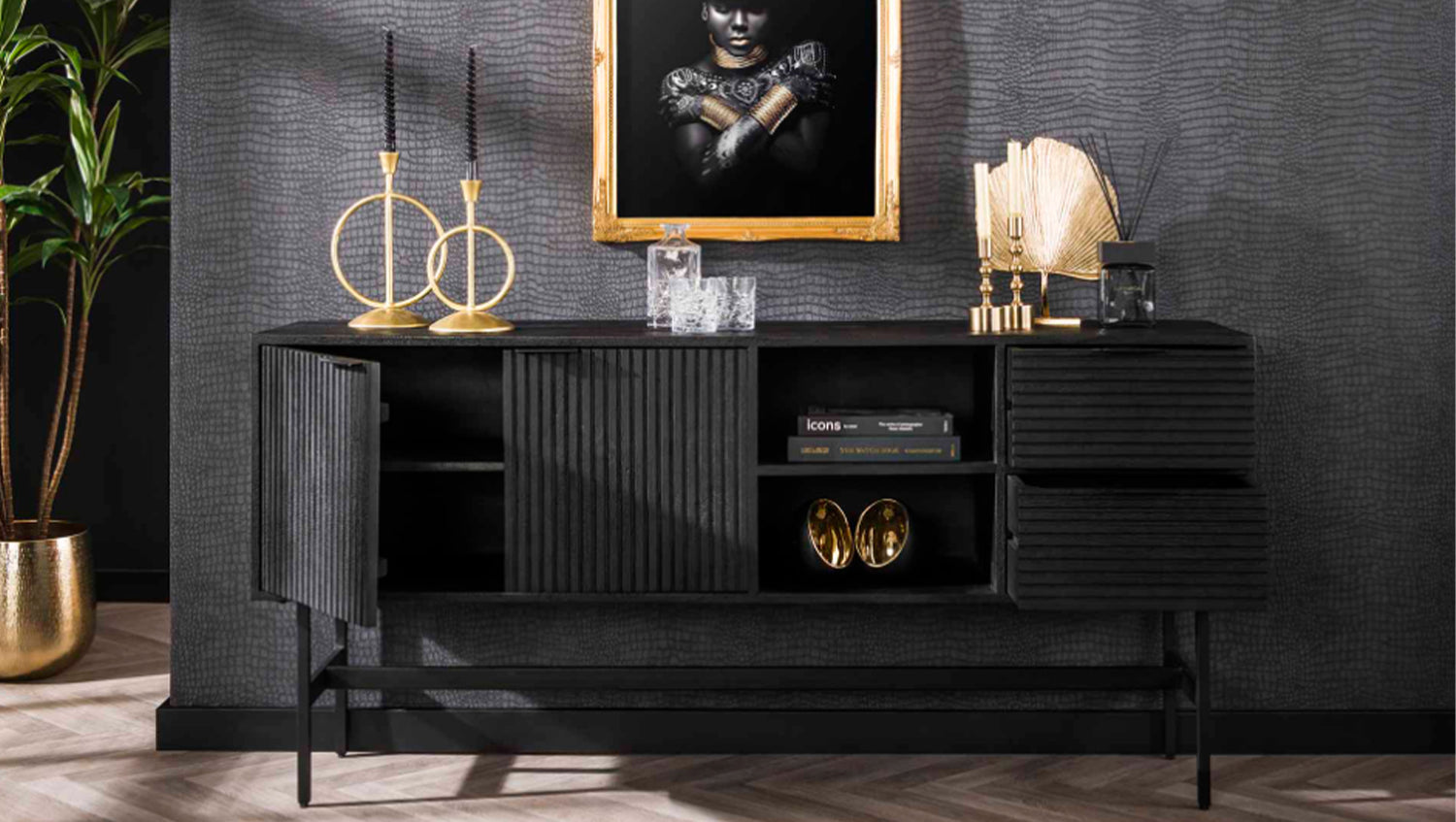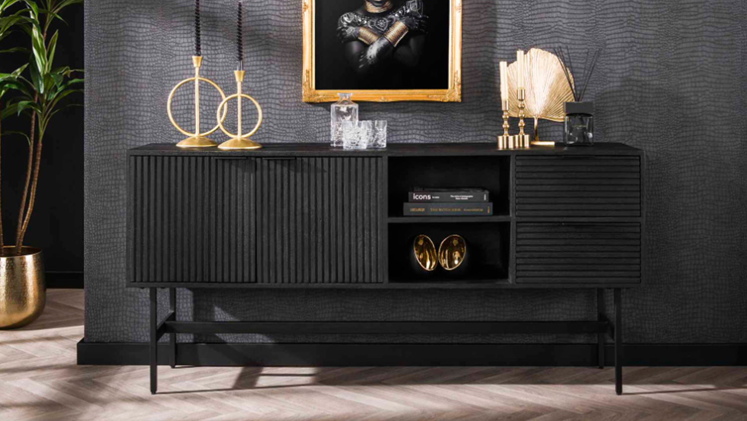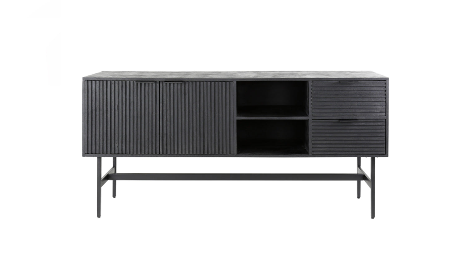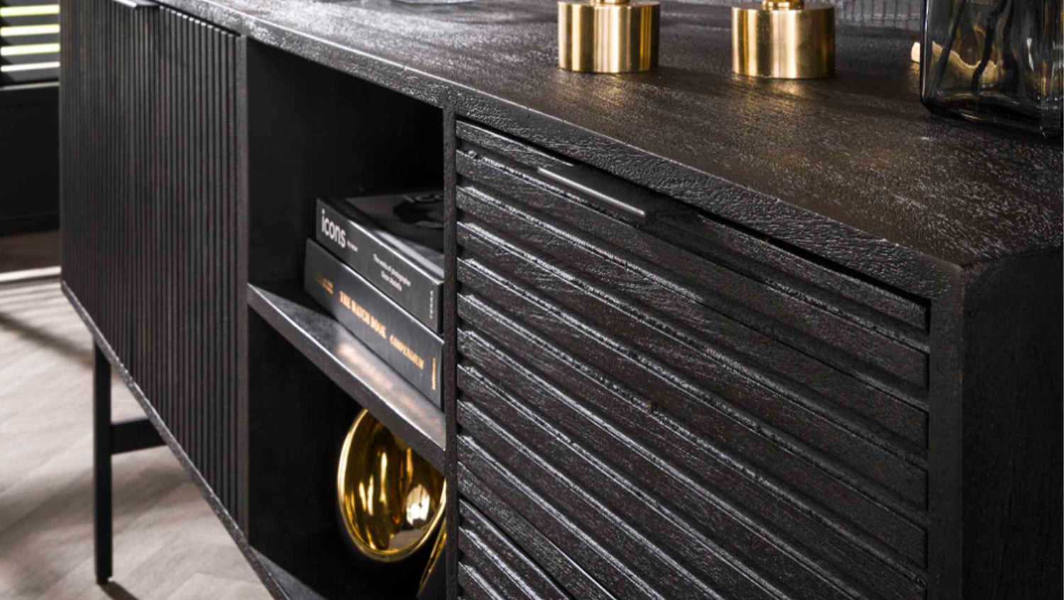 • Korpus, Türen und Schubladen aus Mangoholz, schwarz lackiert