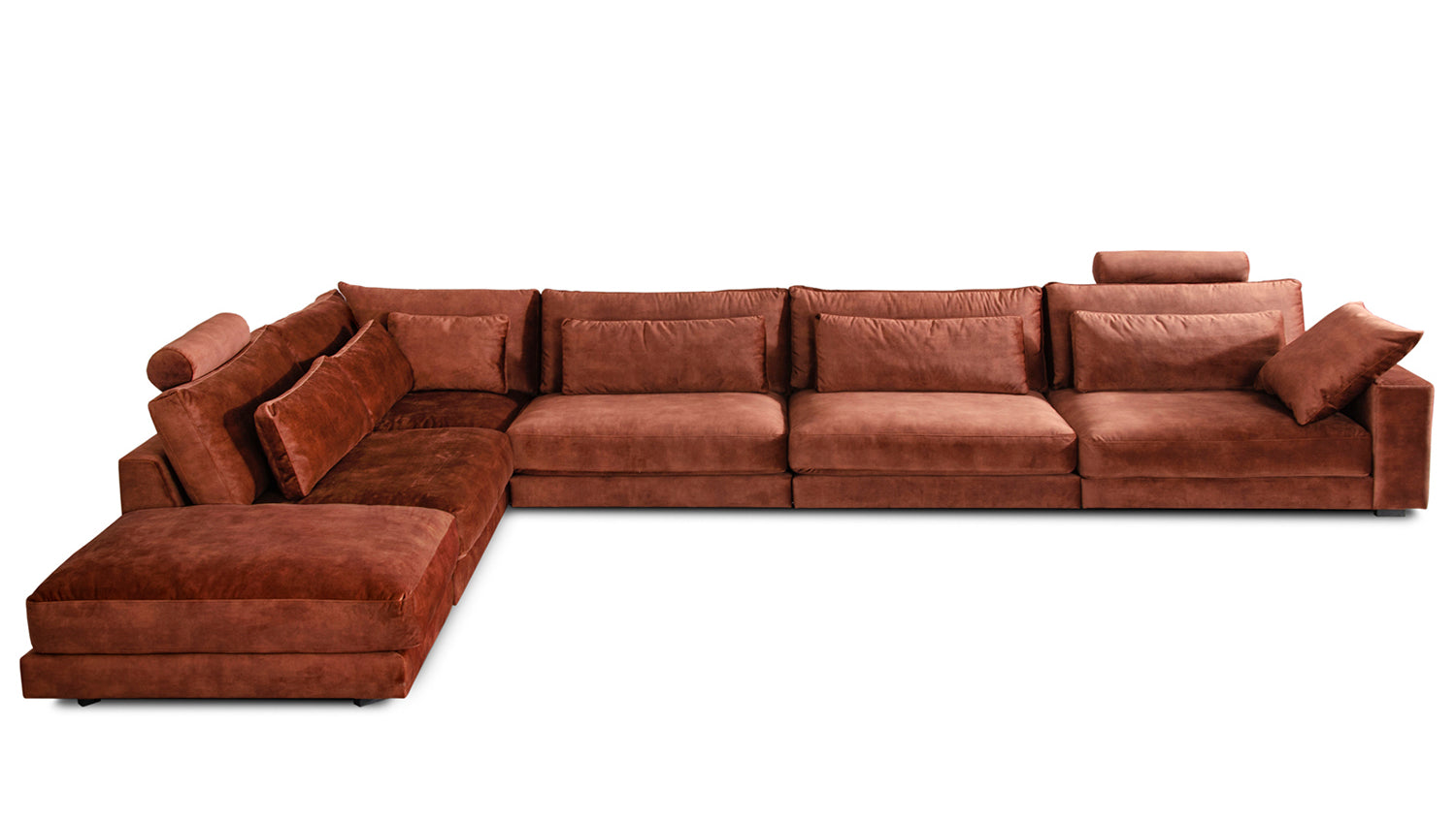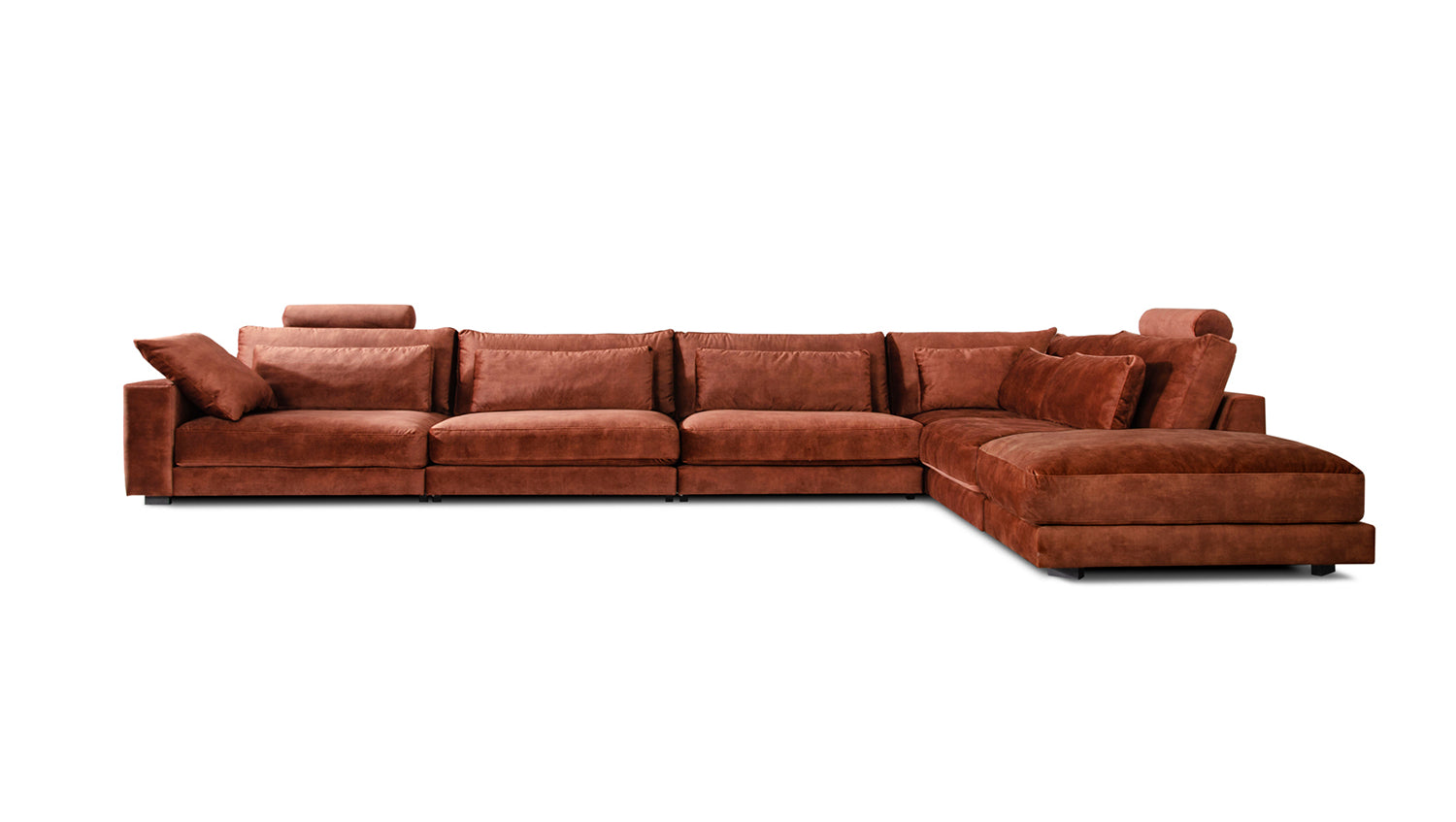 KAWOLA Sofa ETICO Ecksofa Mega-Wohnlandschaft Velvet rostrot
