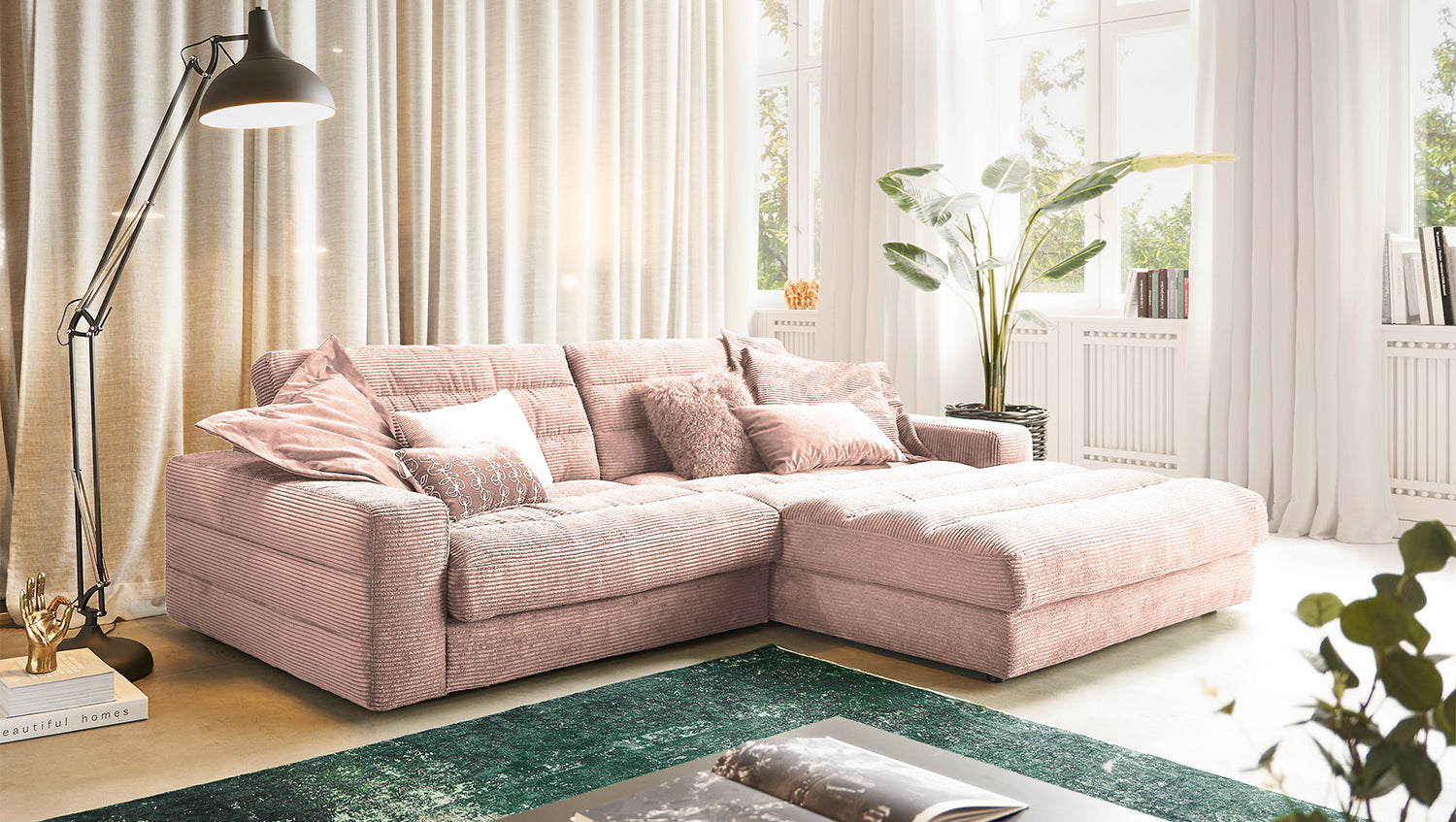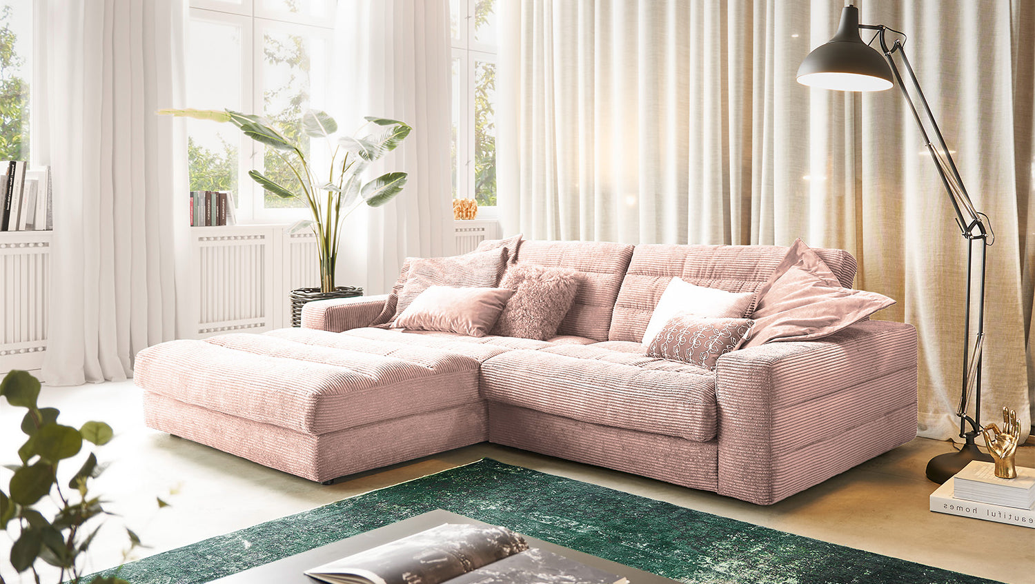 KAWOLA Sofa LANA Ecksofa Cord rosa