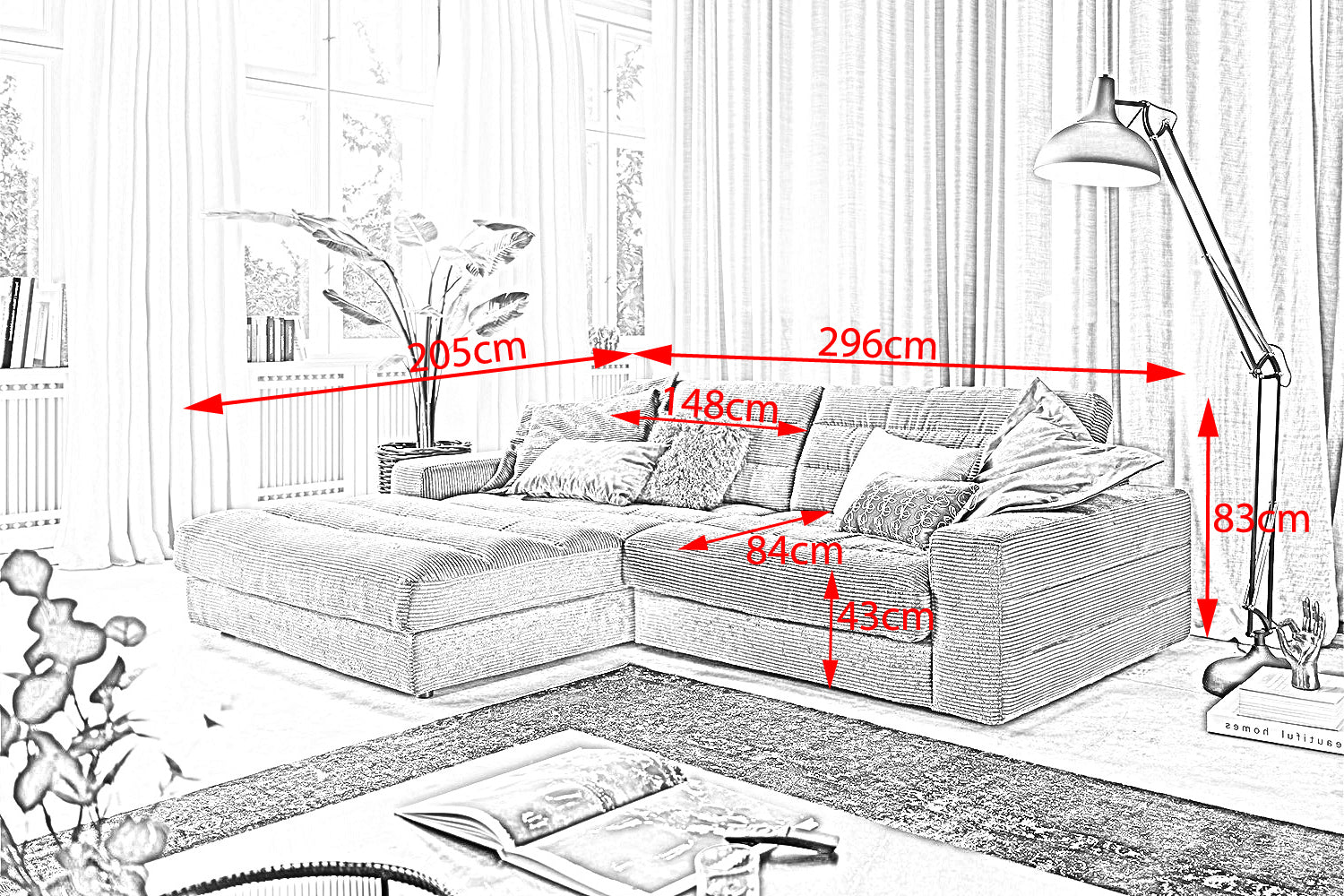 Das KAWOLA Ecksofa LANA begeistert mit Stil und Eleganz. Das klassische Design und der Bezug aus trendigem Cord-Stoff verleihen ihm eine zeitlose Schönheit, die Ihrem Wohnzimmer eine einzigartige Wohlfühl-Atmosphäre verleiht. Die Polsterung garantiert höchsten Sitzkomfort und passt sich der Körperform an. Sitzabdrücke sowie Wellenbildung der Bezüge sind warentypisch. Der Sitz besteht aus einer Unterfederung mit dauerelastischen Stahl-Wellenfedern und einer oberseitigen Abdeckung sowie lose Sitzkissen aus PUR-Schaum. Sitz und Rücken sind abgedeckt mit einem Inlett, welches befüllt ist mit hochwertigen Füllstoffen, die eine Beimischung von Federn enthalten. Um ein Stauchen des Füllmaterials zu verhindern, sollten die Sitz- und Rückenkissen nach Gebrauch aufgeschüttelt werden. Entspannen Sie auf dem KAWOLA Sofa LANA, und lassen Sie sich aus dem grauen Alltag entführen...