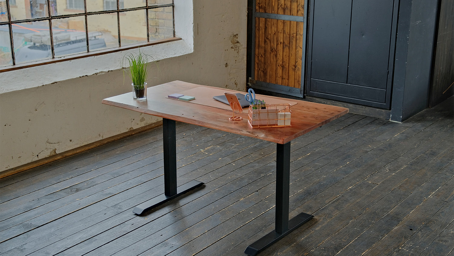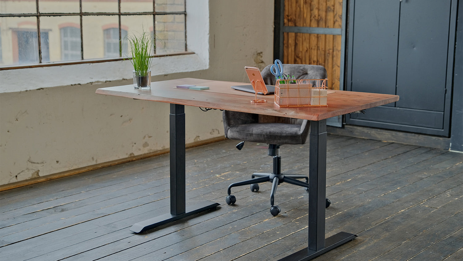 Der KAWOLA Schreibtisch LORA verbindet auf elegante Weise funktionale Modernität mit klassischem Design und fügt sich nahtlos in jedes Interieur ein. Das Aushängeschild des Tisches sind die Tischkanten, die den natürlichen Formen eines Baumes entsprechen. Das schwarze Metallgestell bildet hierzu einen gelungenen Kontrast und verleiht dem Massivholztisch LORA einen Hauch industriellen Charme. Des Weiteren kann der Tisch bequem in der Höhe verstellt werden und verfügt zusätzlich über eine schicke Monitorhalterung - für optimale Arbeitsbedingungen. Dieser Baumkantentisch ist eine echte Bereicherung für Ihr Büro und Ihr Zuhause! ACHTUNG: TISCHPLATTE IST NICHT VORGEBOHRT! BOHRUNGEN ZUM ANBRINGEN DER MONITORHALTERUNG MÜSSEN SELBST VORGENOMMEN WERDEN! WICHTIGER HINWEIS Bei diesem Baumkantentisch handelt es sich um ein Naturprodukt. Das macht ihn zu einem Unikat, jeder Tisch ist einzigartig. Maßabweichungen, Astlöcher und Risse sowie kleinere Unebenheiten sind warentypisch und kein Reklamationsgrund. Vorhandene Risse werden noch in der Herstellung mit Stücken der gleichen Holzart ausgefüllt. Daraus resultierende farbliche Abweichungen stellen ebenfalls keinen Reklamationsgrund dar. Die Kabelführung, die auf dem Hauptbild zu sehen ist, ist NICHT im Lieferumfang inbegriffen!