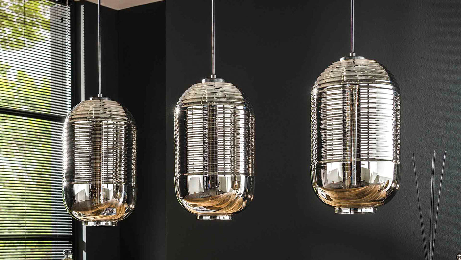 Die moderne Hängeleuchte BRAGA von KAWOLA überzeugt mit drei eleganten Glasschirmen, die aus verchromtem Glas gefertigt sind und für einen trendigen sowie stimmungsvollen Akzent sorgen. Die Schirme verteilen das Licht sanft und gleichmäßig im Raum, wodurch eine angenehme Atmosphäre entsteht. Die kunstvoll gestalteten Metallteile in Schwarz unterstreichen das zeitlose Design. Zudem lassen sich alle Schirme individuell in der Höhe anpassen, bis zu einer maximalen Länge von 150 cm, was maximale Flexibilität bei der Gestaltung bietet. Die Hängelampe BRAGA wird in jedem Raum zum Hingucker.