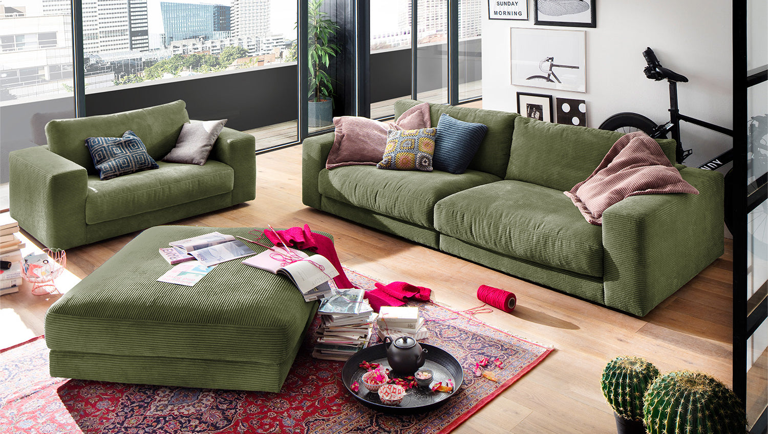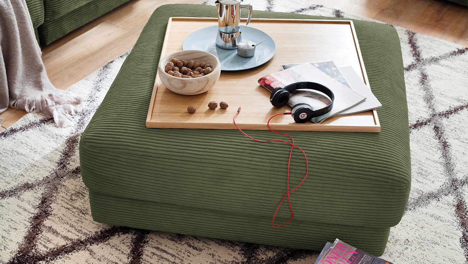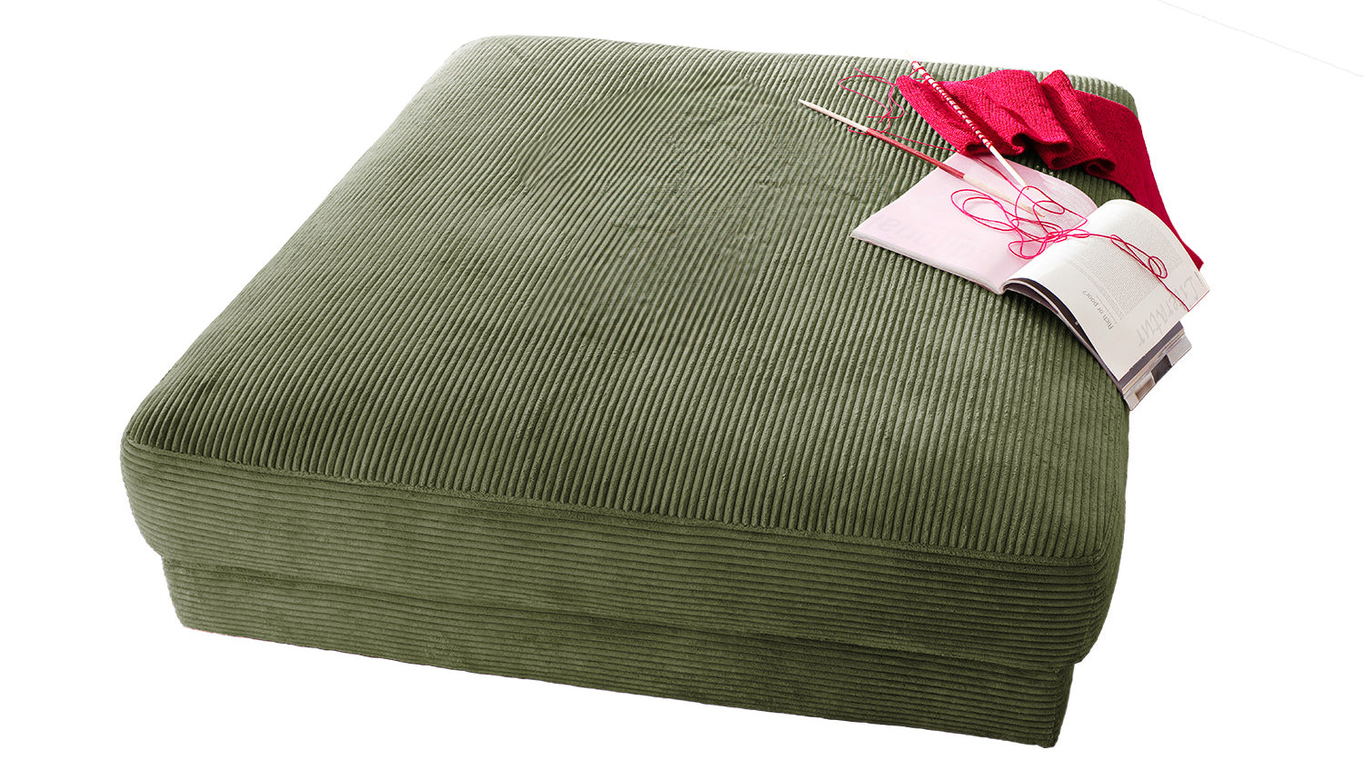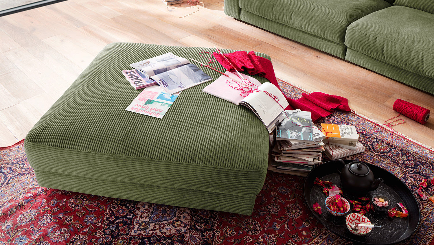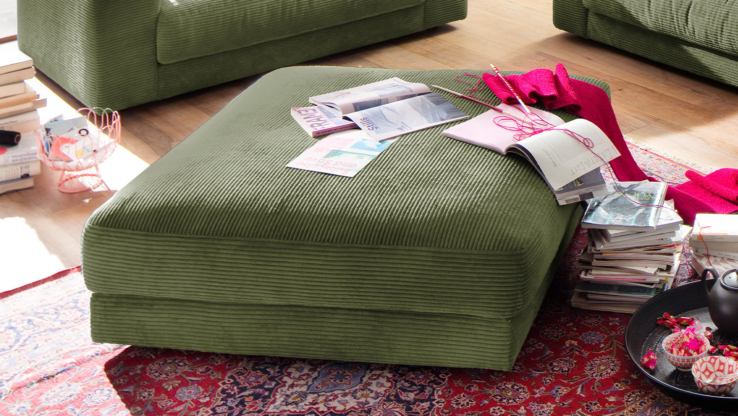 KAWOLA Big Hocker MADELINE Polsterhocker Cord olivgrün