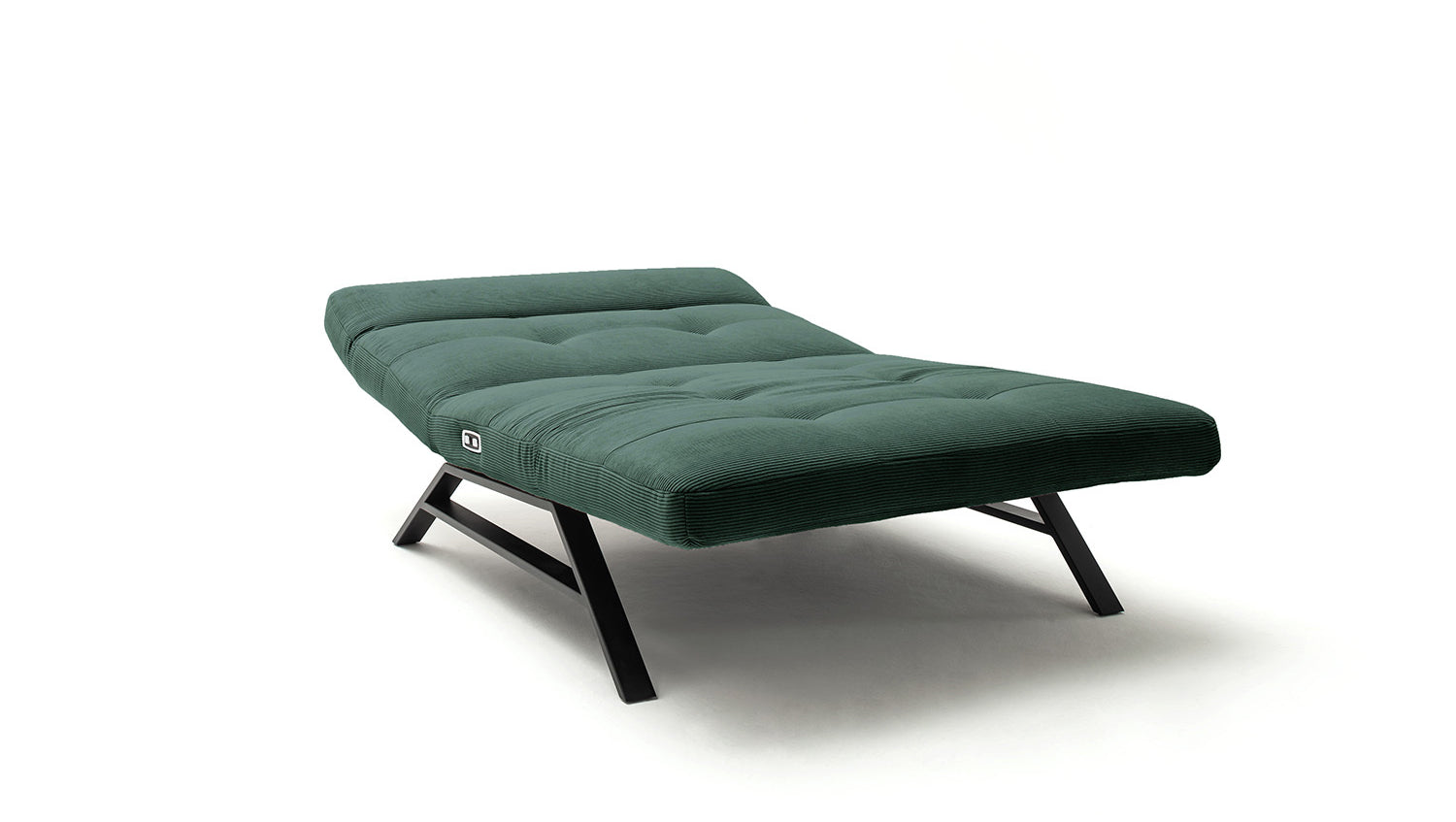 Die KAWOLA Liege AMERIVA ist eine wunderbare Kombination aus Design und Funktion. Die Metallkufen in schwarz matt bilden den Kontrast zum Bezug aus filigranem Feincord.