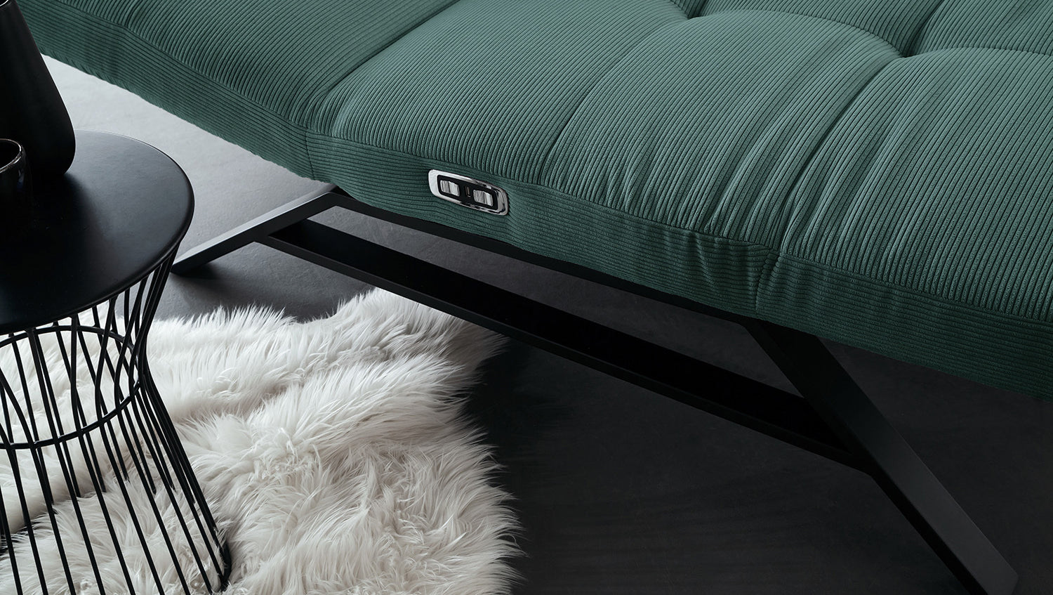 Die motorische Funktion, die durch die Knöpfe auf der rechten Seite bedient werden kann, bietet eine stufenlos einstellbare Liegeposition. Bei komplett ausgefahrener Funktion gelangen Sie in die Herz-Waage Position, bei der sich das Herz und die Füße auf derselben Position befinden. Diese Position bewirkt optimale Durchblutung, entlastet die Beine und eignet sich daher perfekt zum Entspannen. Die weiche Polsterung sorgen für höchsten Sitz- und Liegekomfort.