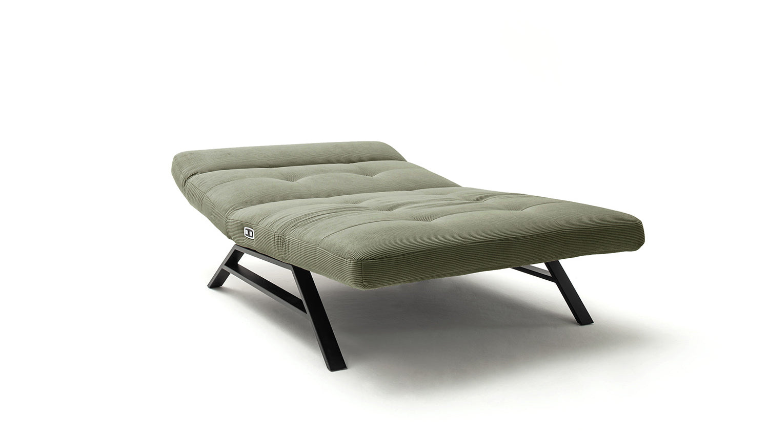 Die KAWOLA Liege AMERIVA ist eine wunderbare Kombination aus Design und Funktion. Die Metallkufen in schwarz matt bilden den Kontrast zum Bezug aus filigranem Feincord.