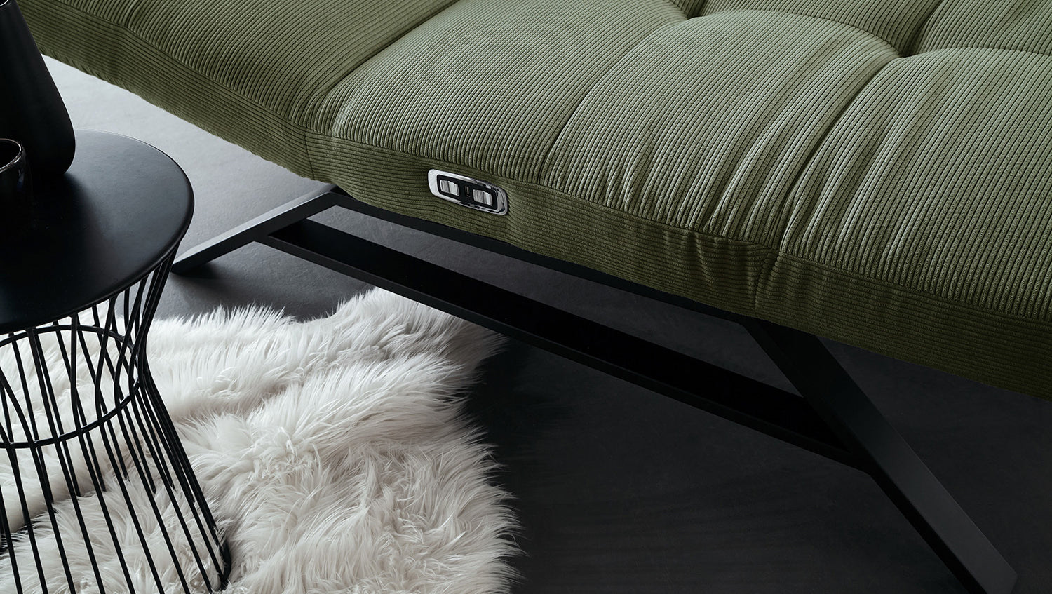 Die motorische Funktion, die durch die Knöpfe auf der rechten Seite bedient werden kann, bietet eine stufenlos einstellbare Liegeposition. Bei komplett ausgefahrener Funktion gelangen Sie in die Herz-Waage Position, bei der sich das Herz und die Füße auf derselben Position befinden. Diese Position bewirkt optimale Durchblutung, entlastet die Beine und eignet sich daher perfekt zum Entspannen. Die weiche Polsterung sorgen für höchsten Sitz- und Liegekomfort.