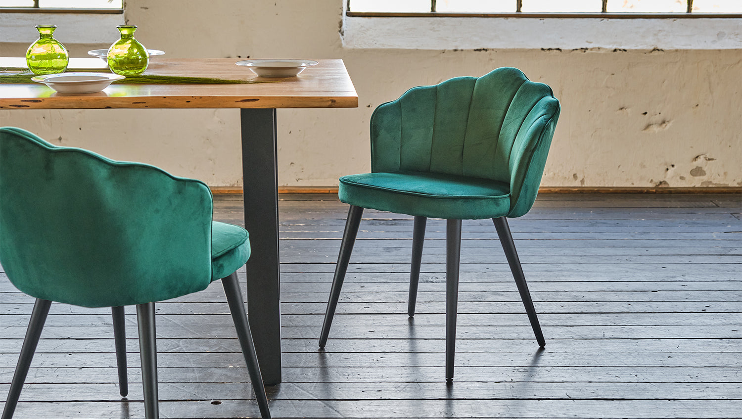 KAWOLA Stuhl SALLY Esszimmerstuhl Velvet grün Fuß schwarz