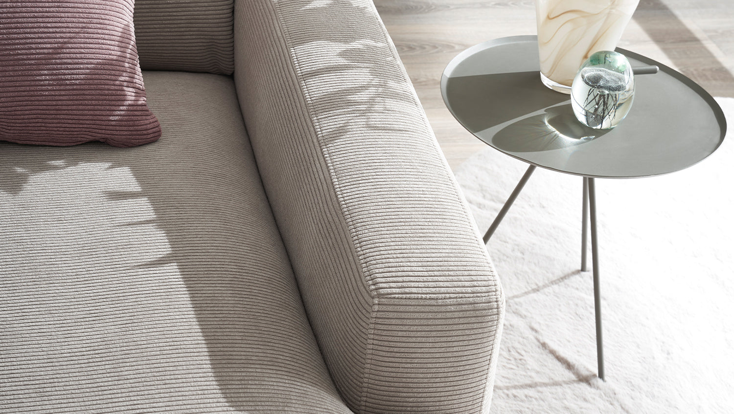 Der KAWOLA Longseat CARA verbindet klassisches Design mit moderner Sachlichkeit und fügt sich nahtlos in jedes Interieur ein. Seine weichen Formen und der Bezug aus angesagtem Feincord verleihen dem Longseat eine zeitlose Eleganz. Die Polsterung passt sich der Körperform an; Sitzabdrücke sowie Wellenbildung der Bezüge sind warentypisch. Der Sitz besteht aus einer Unterfederung mit dauerelastischen Stahl-Wellenfedern und einer oberseitigen Abdeckung sowie losen Sitzkissen aus PUR-Schaum. Sitz und Rücken sind abgedeckt mit einem Inlett, welches befüllt ist mit hochwertigen Füllstoffen, die eine Beimischung von Federn enthalten. Um ein Stauchen des Füllmaterials zu verhindern, sollten die Rückenkissen nach Gebrauch aufgeschüttelt werden. Egal zu welcher Gelegenheit - auf dem Longseat CARA findet jeder ein Plätzchen zum Entspannen!