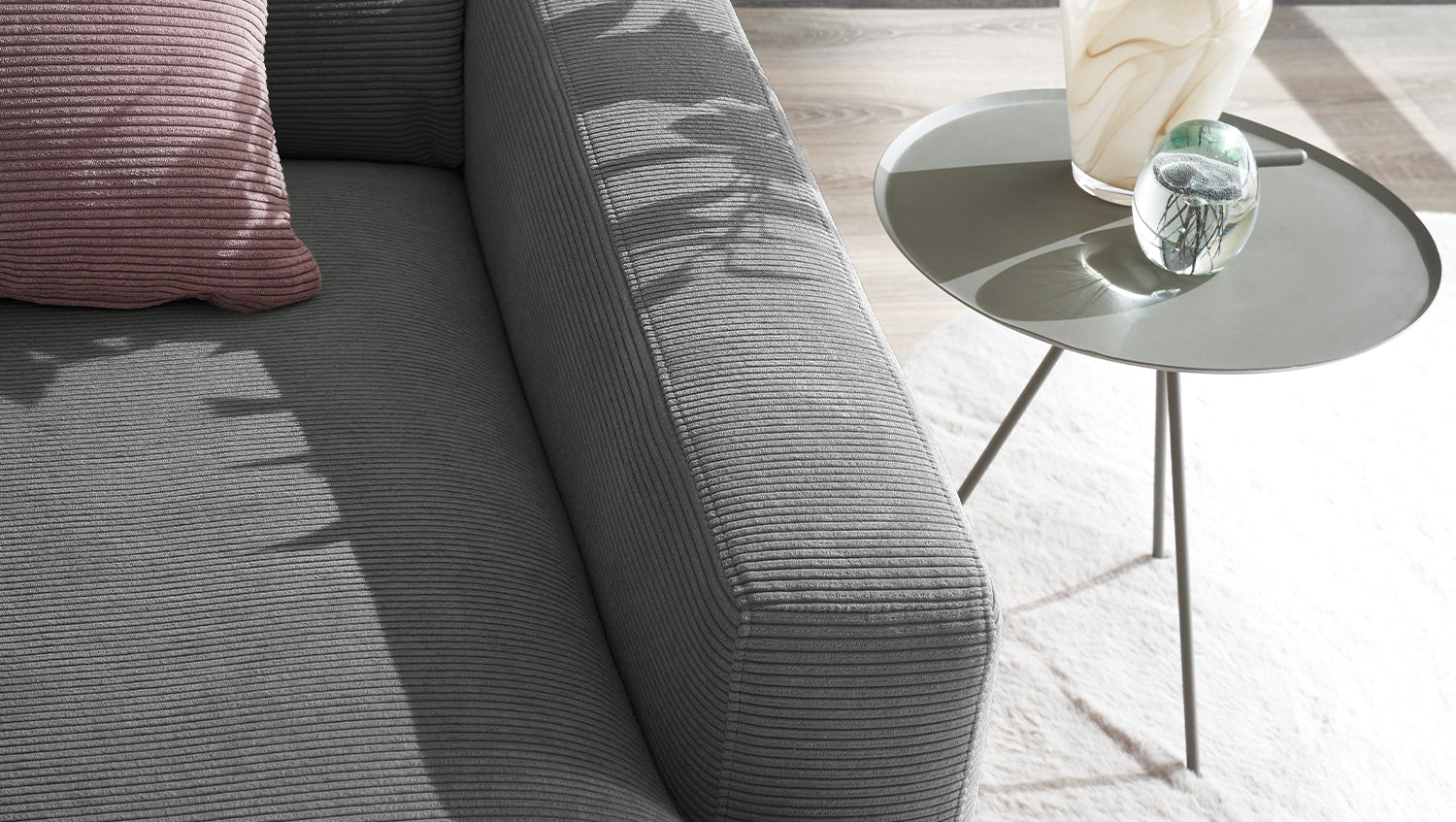 Der KAWOLA Longseat CARA verbindet klassisches Design mit moderner Sachlichkeit und fügt sich nahtlos in jedes Interieur ein. Seine weichen Formen und der Bezug aus angesagtem Feincord verleihen dem Longseat eine zeitlose Eleganz. Die Polsterung passt sich der Körperform an; Sitzabdrücke sowie Wellenbildung der Bezüge sind warentypisch. Der Sitz besteht aus einer Unterfederung mit dauerelastischen Stahl-Wellenfedern und einer oberseitigen Abdeckung sowie losen Sitzkissen aus PUR-Schaum. Sitz und Rücken sind abgedeckt mit einem Inlett, welches befüllt ist mit hochwertigen Füllstoffen, die eine Beimischung von Federn enthalten. Um ein Stauchen des Füllmaterials zu verhindern, sollten die Rückenkissen nach Gebrauch aufgeschüttelt werden. Egal zu welcher Gelegenheit - auf dem Longseat CARA findet jeder ein Plätzchen zum Entspannen!