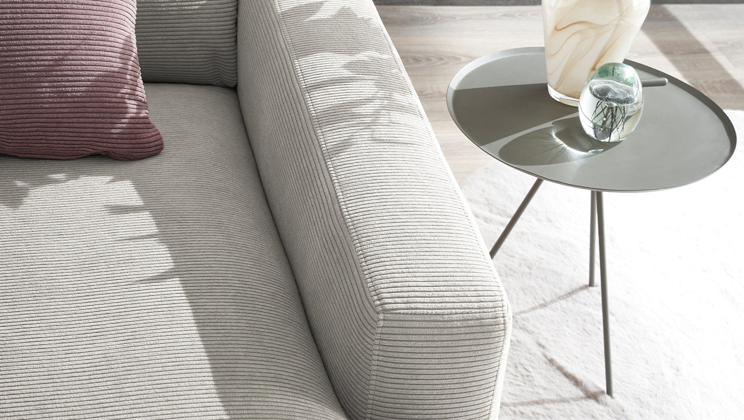 Der KAWOLA Longseat CARA verbindet klassisches Design mit moderner Sachlichkeit und fügt sich nahtlos in jedes Interieur ein. Seine weichen Formen und der Bezug aus angesagtem Feincord verleihen dem Longseat eine zeitlose Eleganz. Die Polsterung passt sich der Körperform an; Sitzabdrücke sowie Wellenbildung der Bezüge sind warentypisch. Der Sitz besteht aus einer Unterfederung mit dauerelastischen Stahl-Wellenfedern und einer oberseitigen Abdeckung sowie losen Sitzkissen aus PUR-Schaum. Sitz und Rücken sind abgedeckt mit einem Inlett, welches befüllt ist mit hochwertigen Füllstoffen, die eine Beimischung von Federn enthalten. Um ein Stauchen des Füllmaterials zu verhindern, sollten die Rückenkissen nach Gebrauch aufgeschüttelt werden. Egal zu welcher Gelegenheit - auf dem Longseat CARA findet jeder ein Plätzchen zum Entspannen!