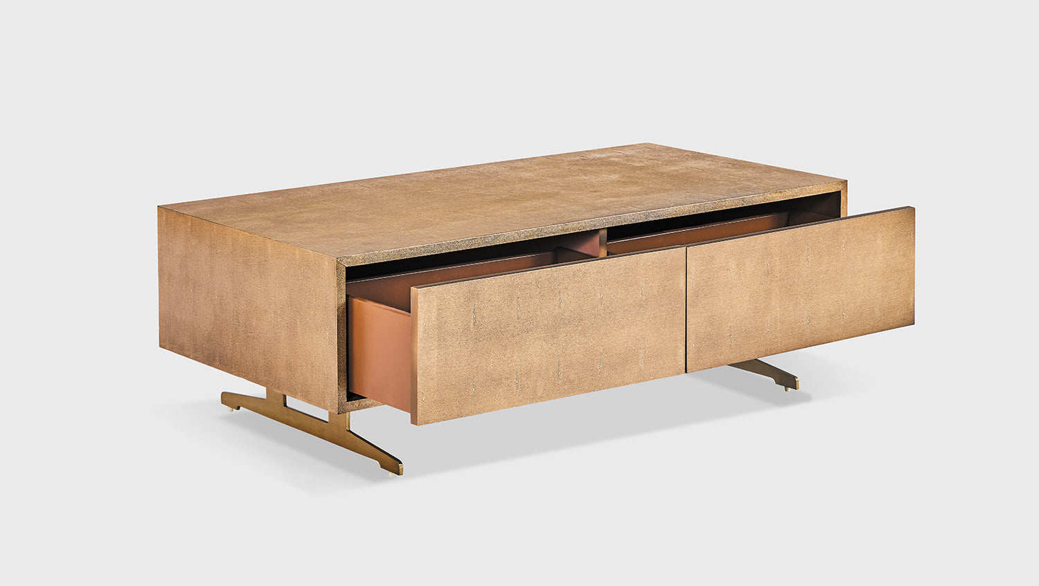 Das KAWOLA Lowboard GALA besticht durch seine elegante Kombination aus modernem Design und praktischer Funktionalität. Es eignet sich auch ideal als Couchtisch oder Beistelltisch. Der Korpus und die Schubladen sind stilvoll mit hochwertigem goldfarbenen Kunstleder bezogen, das dem Möbelstück eine luxuriöse Optik verleiht. Die zwei Schubladen bieten großzügigen Stauraum und lassen sich dank des komfortablen Push-to-Open-Mechanismus mühelos öffnen. Die goldfarbenen Kufenfüße aus gebürstetem Edelstahl sorgen für einen modernen, zeitlosen Look und bieten gleichzeitig stabile Standfestigkeit. Das Lowboard GALA von KAWOLA fügt sich perfekt in jedes Wohnambiente ein und ist ideal für Liebhaber von schlichten, aber dennoch eleganten Möbelstücken. Entdecken Sie die perfekte Kombination aus Design und Funktionalität mit dem Lowboard GALA!