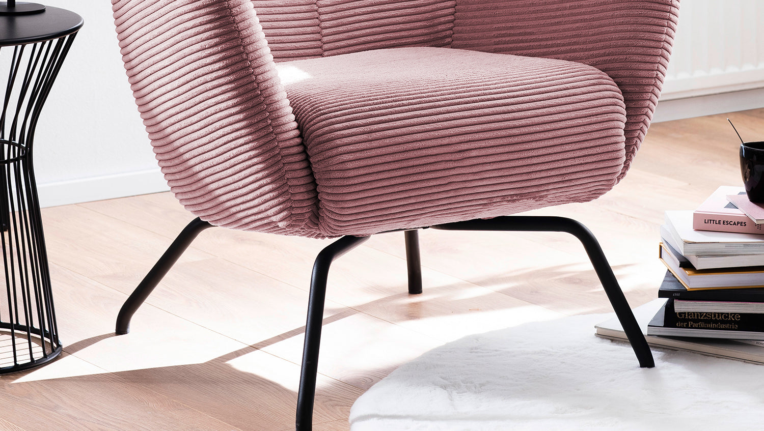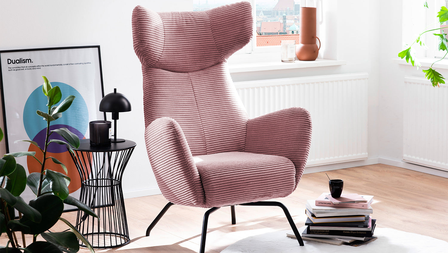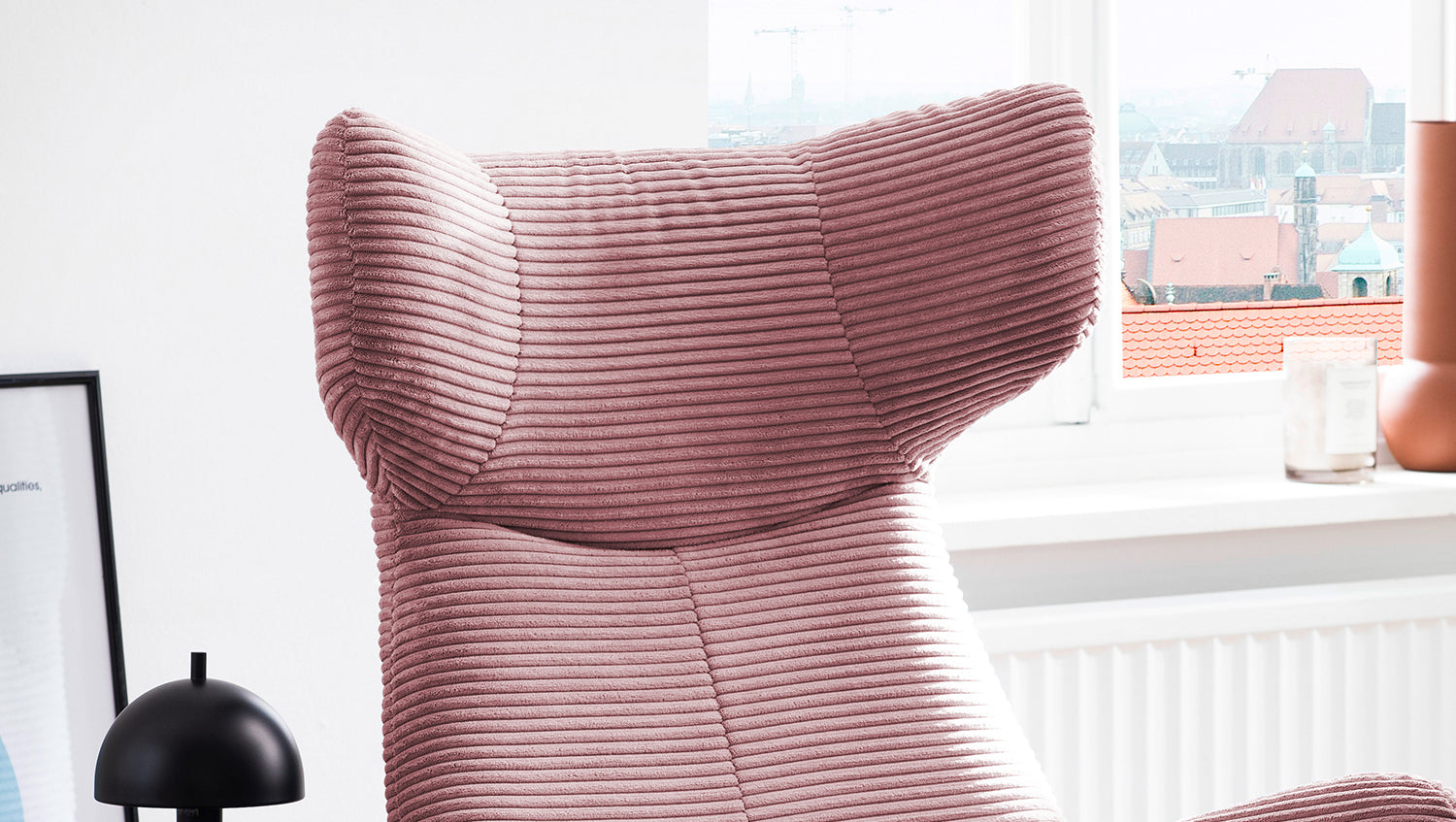 KAWOLA Sessel LOTTE Ohrensessel Cord rosa