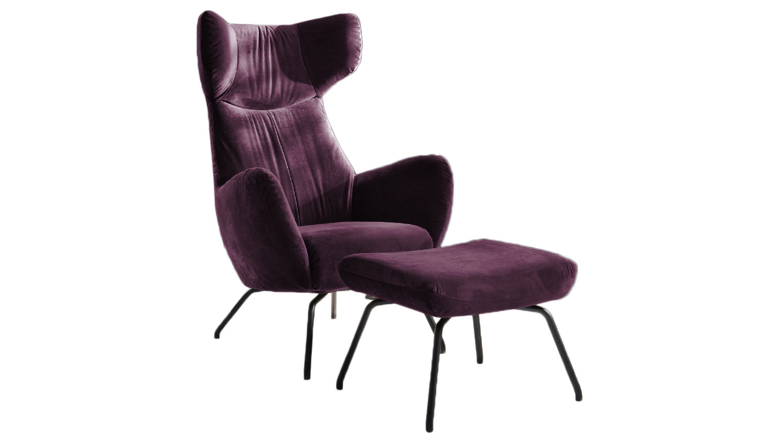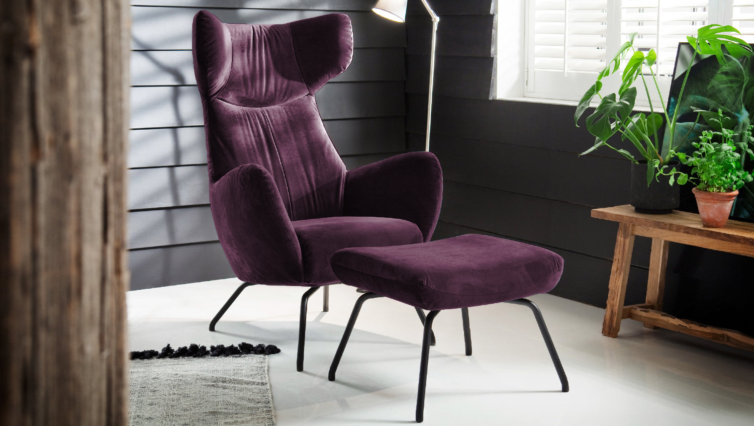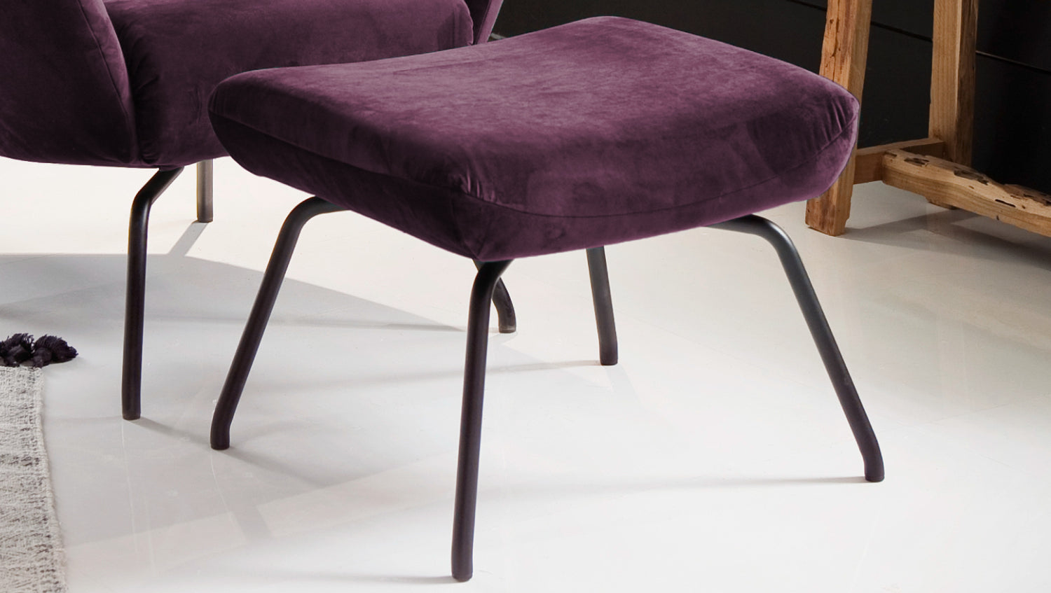 KAWOLA Sessel LOTTE Ohrensessel velvet purple mit Hocker