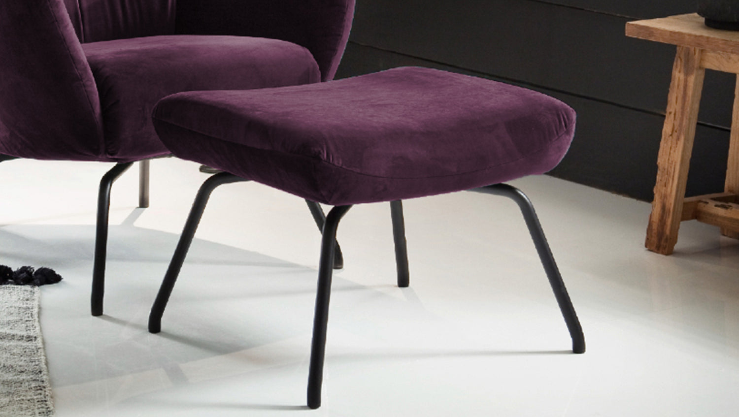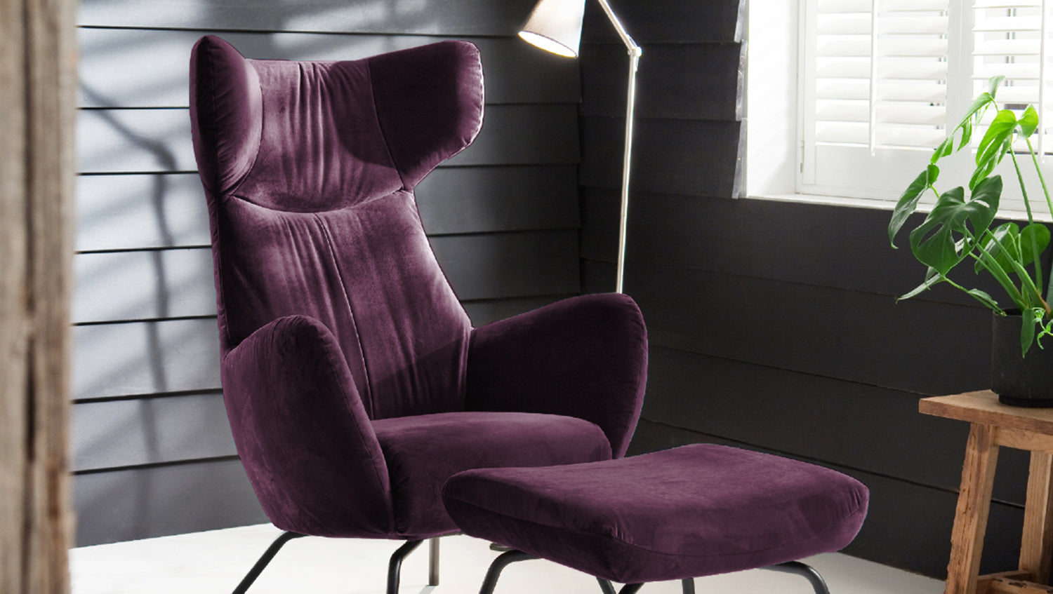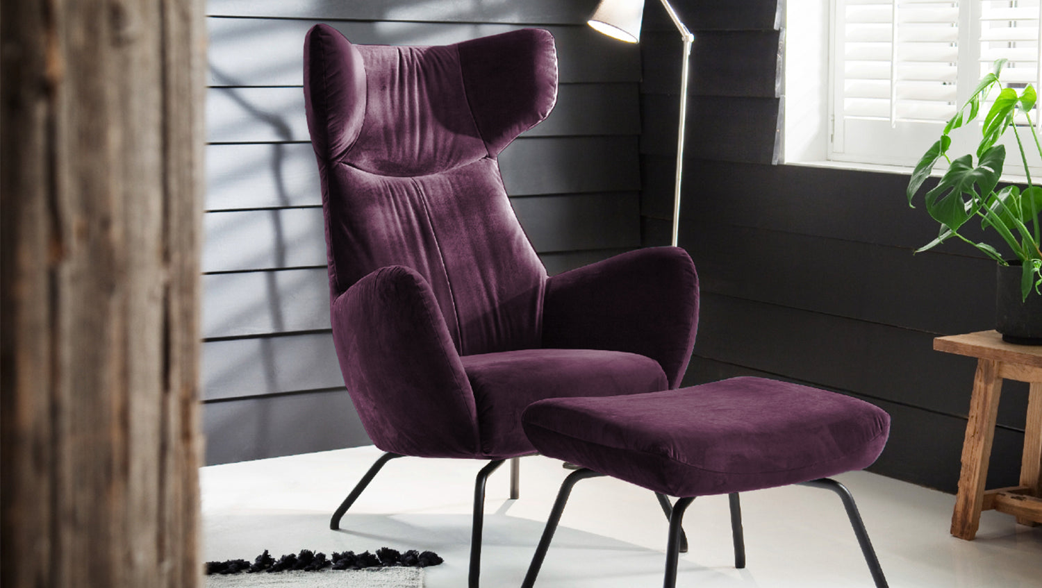 KAWOLA Sessel LOTTE Ohrensessel velvet purple mit Hocker