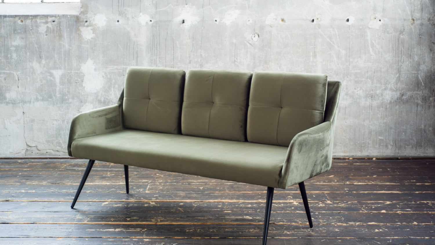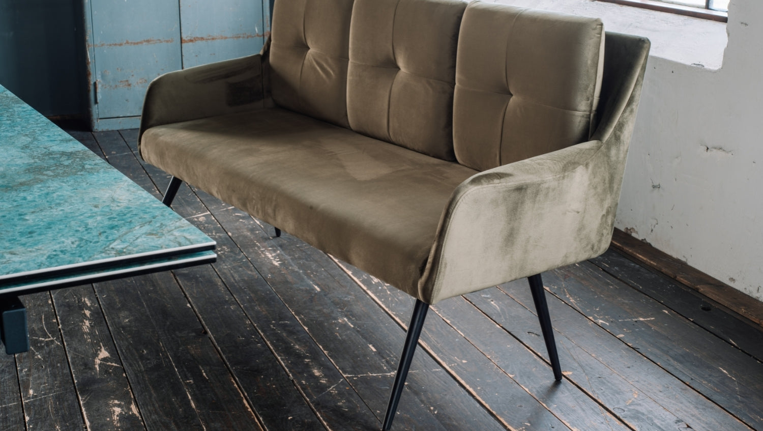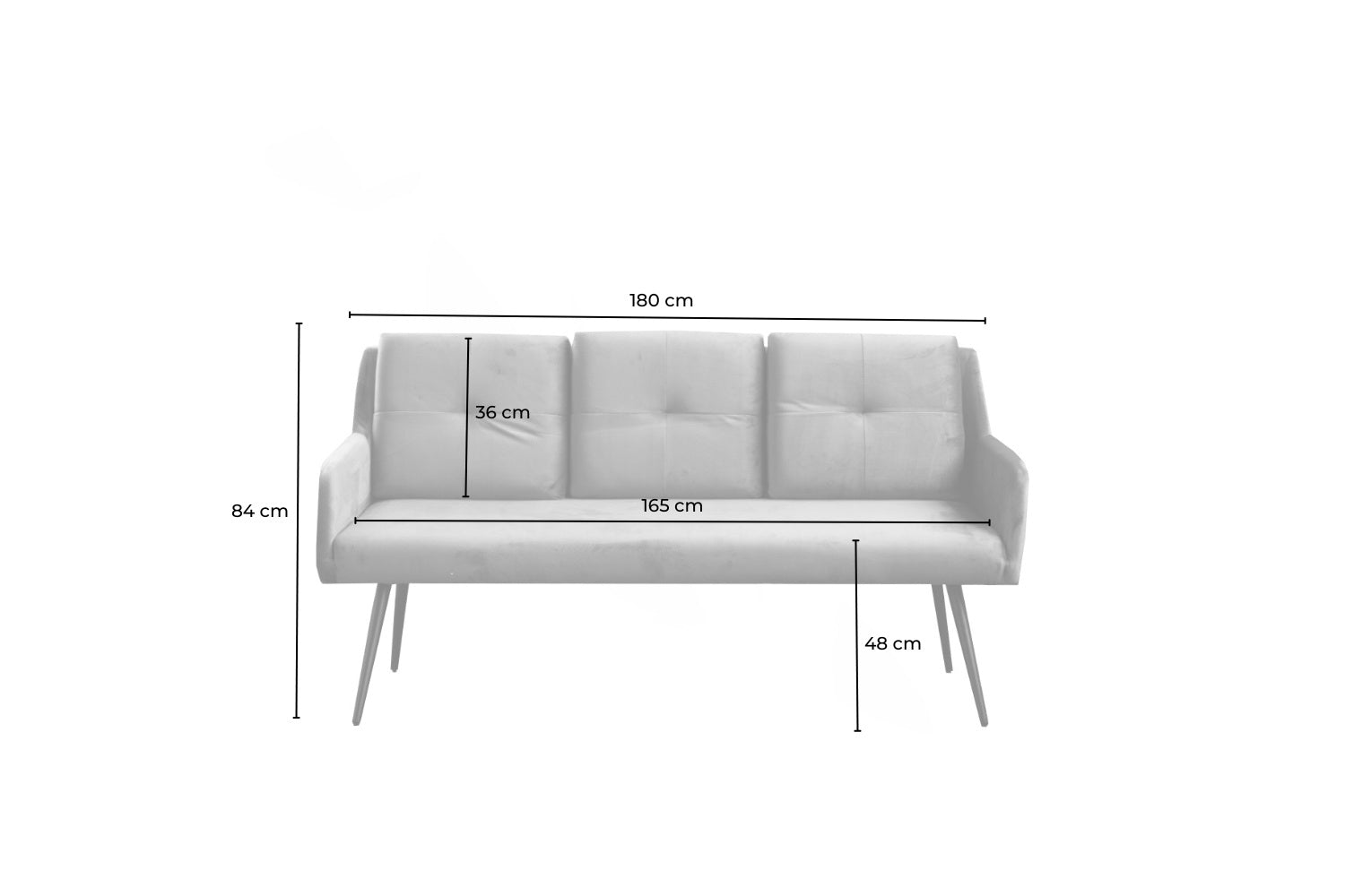 Die KAWOLA Esszimmerbank PIRI kombiniert elegantes Design mit außergewöhnlichem Komfort und wird zum Highlight in jedem Esszimmer. Mit einer großzügigen Breite von 180 cm, einer Tiefe von 64 cm und einer Höhe von 84 cm bietet die Polsterbank ausreichend Platz für geselliges Beisammensein. Der edle Velvet-Bezug verleiht der Sitzbank eine besonders stilvolle Optik und angenehme Haptik. Dank einer Sitzhöhe von 48 cm, einer Sitztiefe von 46 cm und einer Sitzbreite von 165 cm ist die Bank ideal auf hohen Sitzkomfort ausgelegt. Die stabilen, pulverbeschichteten Eisenfüße in Schwarz sorgen für sicheren Stand und ein modernes Design, das sich perfekt in verschiedene Einrichtungsstile integrieren lässt. Die PIRI Esszimmerbank ist die perfekte Wahl für alle, die hochwertigen Komfort mit einer modernen und luxuriösen Optik verbinden möchten.