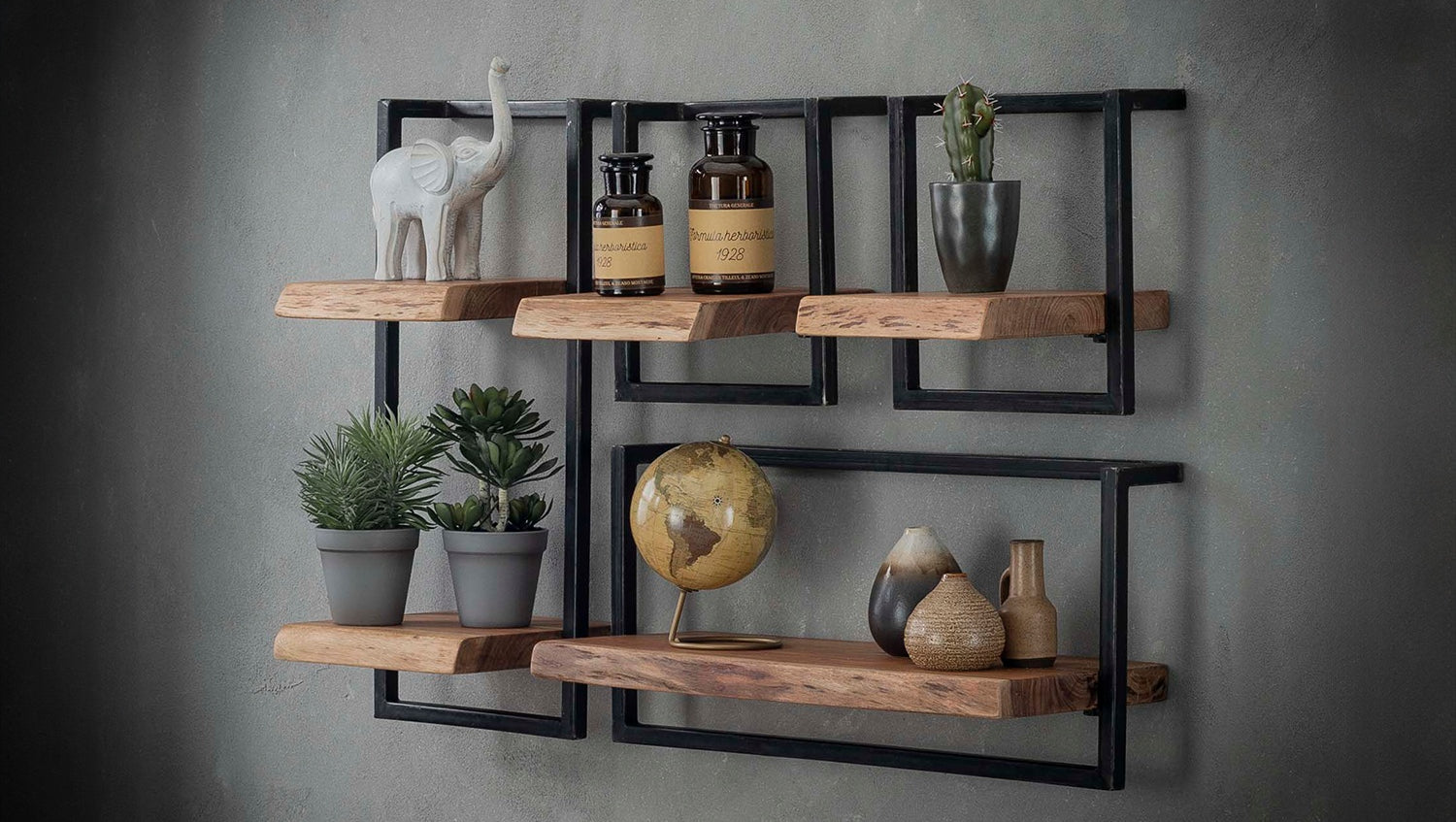 • Design-Highlight: Kombination aus Naturholz und industriellem Stahl