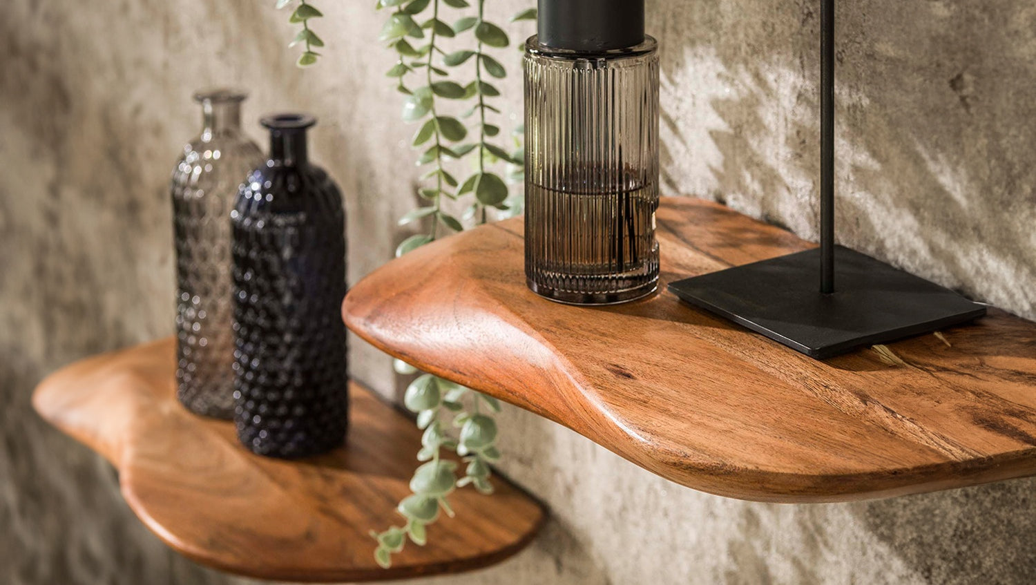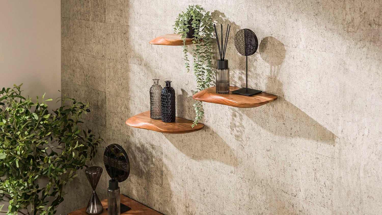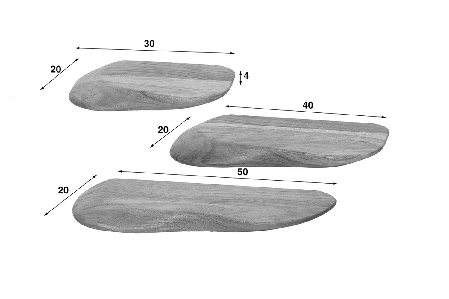 KAWOLA Wandregal HUZO 3-tlg. Akazie massiv natur