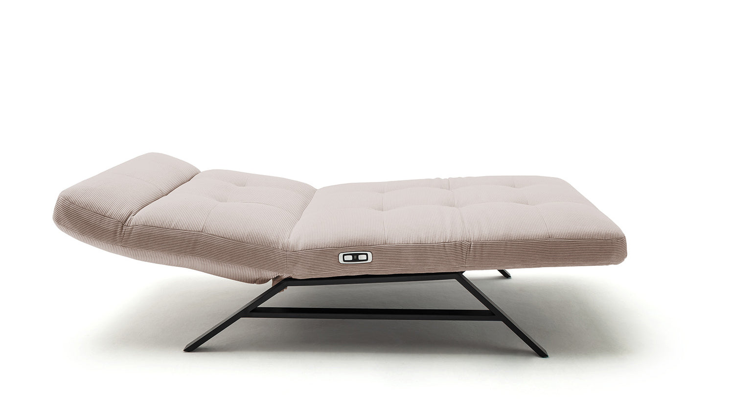Die motorische Funktion, die durch die Knöpfe auf der rechten Seite bedient werden kann, bietet eine stufenlos einstellbare Liegeposition. Bei komplett ausgefahrener Funktion gelangen Sie in die Herz-Waage Position, bei der sich das Herz und die Füße auf derselben Position befinden. Diese Position bewirkt optimale Durchblutung, entlastet die Beine und eignet sich daher perfekt zum Entspannen. Die weiche Polsterung sorgen für höchsten Sitz- und Liegekomfort.