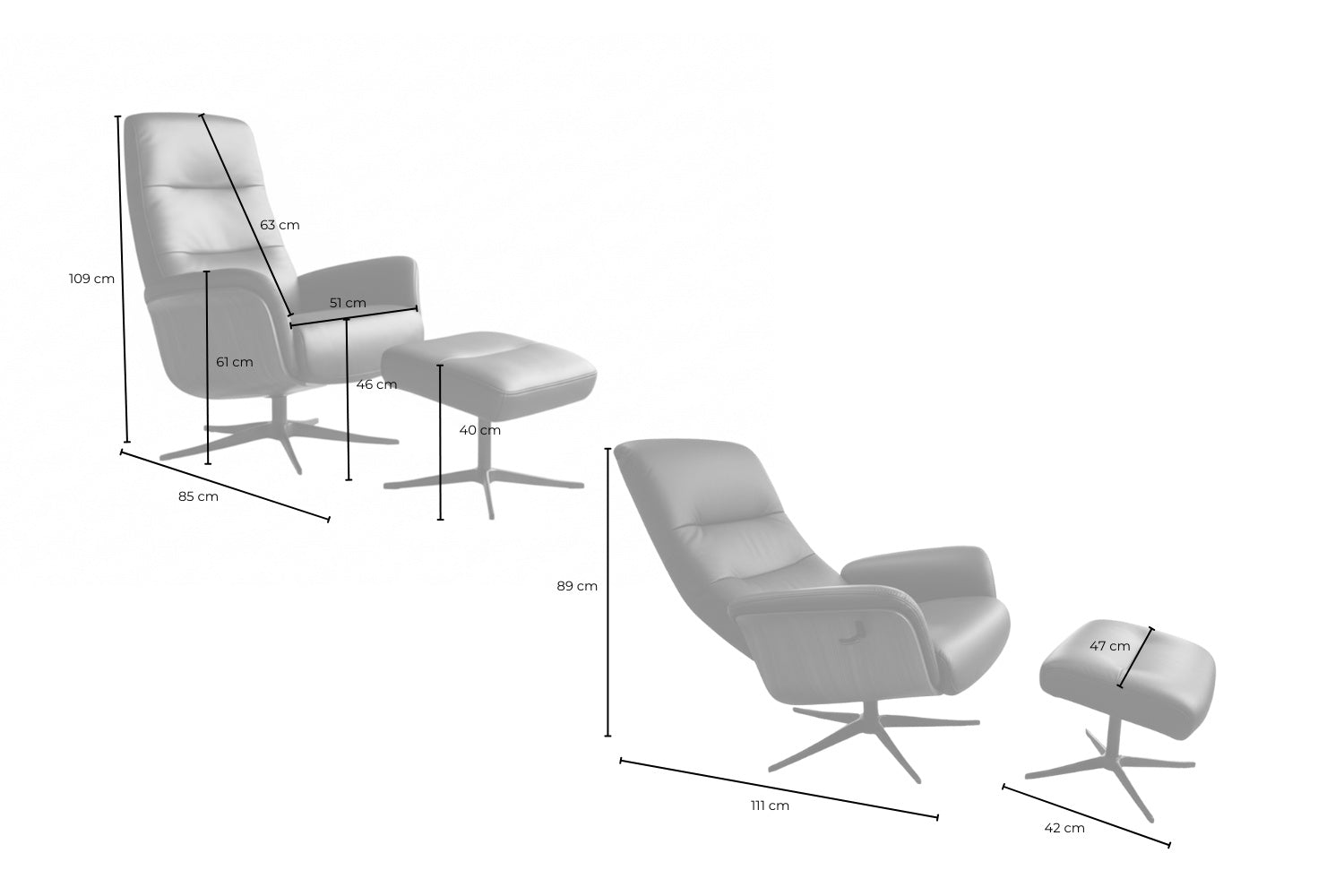 Mit der integrierten Relaxfunktion können Sie sich einfach zurücklehnen und mühelos Ihre persönliche Wohlfühlposition finden. Die drehbare Sitzfläche macht den Sessel flexibel, sodass Sie sich bequem orientieren können, ohne aufzustehen. Die Kopfstütze liefert angenehme Unterstützung bei längeren Entspannungsmomenten, und der passende Fußhocker rundet das Komforterlebnis perfekt ab.