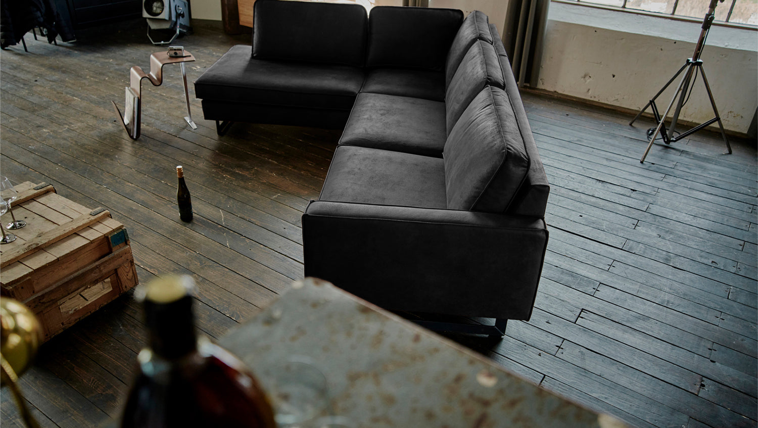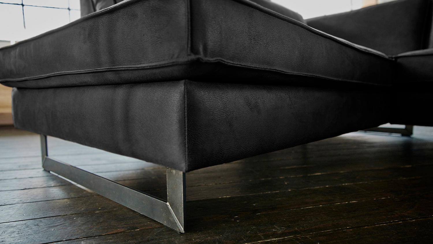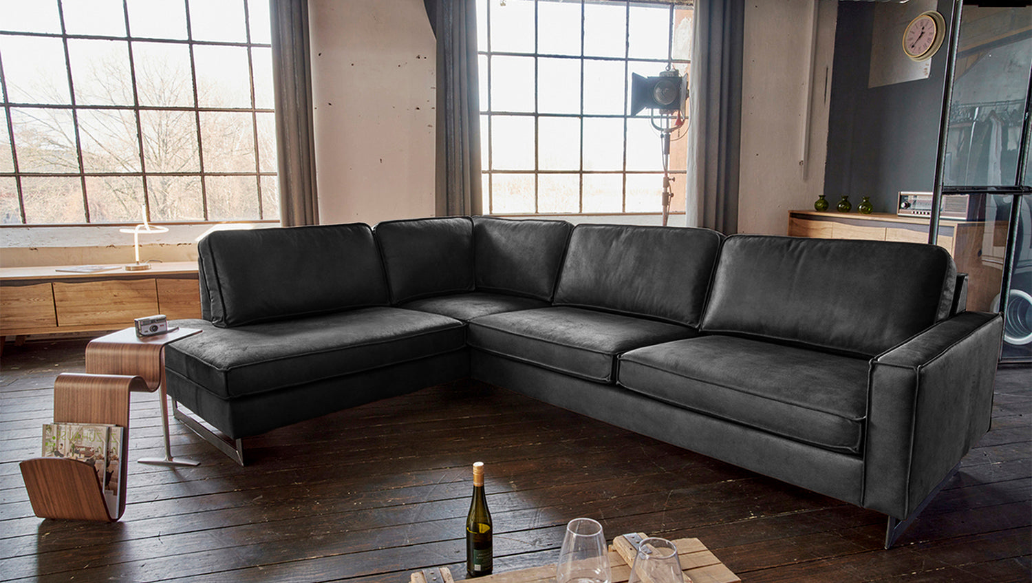 Extreme Robustheit ist durch das massive Holzgestell ebenso gegeben wie eine komfortable und legere Polsterung für ein weiches Sitzvergnügen. Trotz seiner großflächigen Maße lässt sich das Ecksofa in allen Räumlichkeiten flexibel positionieren und stellt damit jederzeit ein optisches Highlight dar.